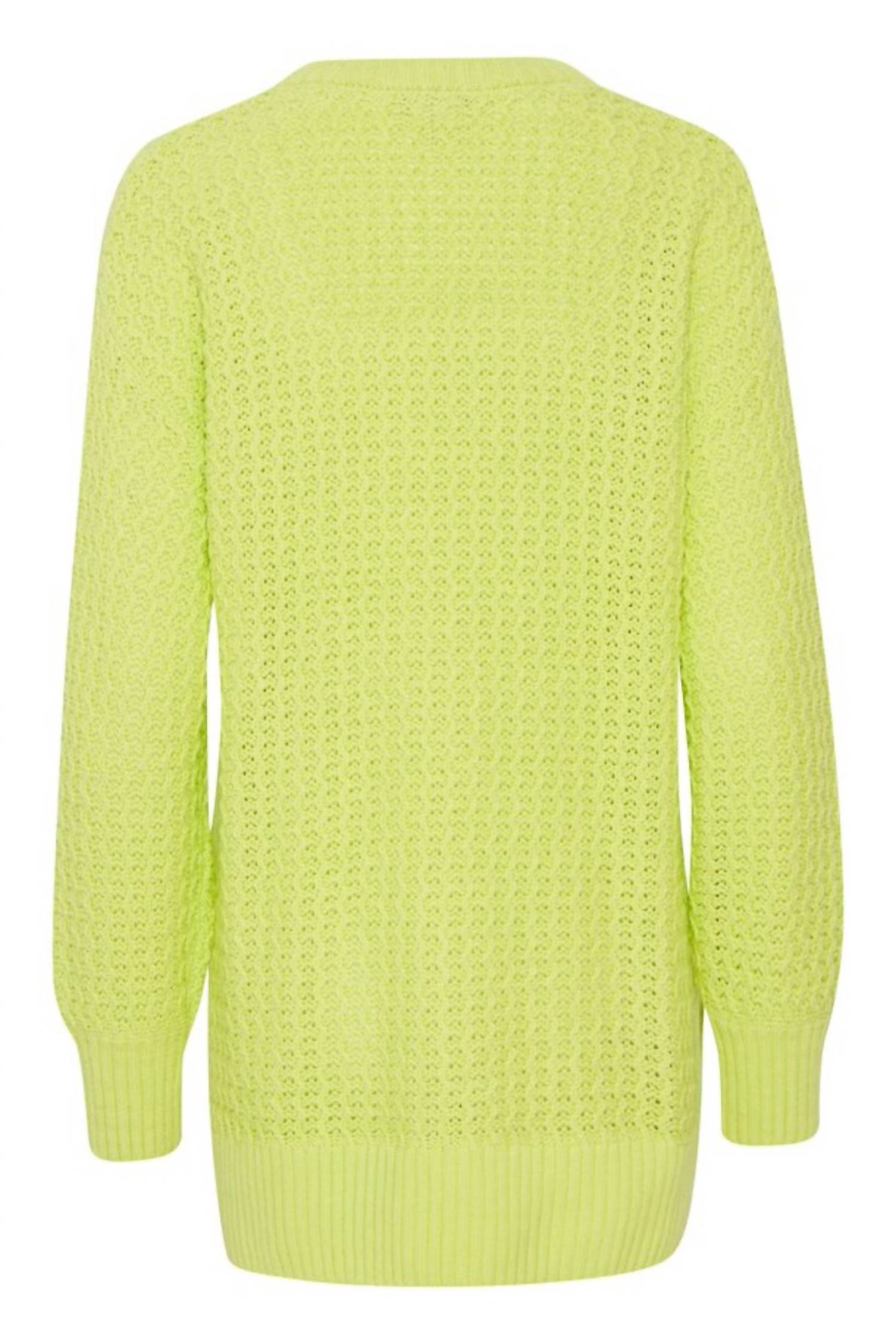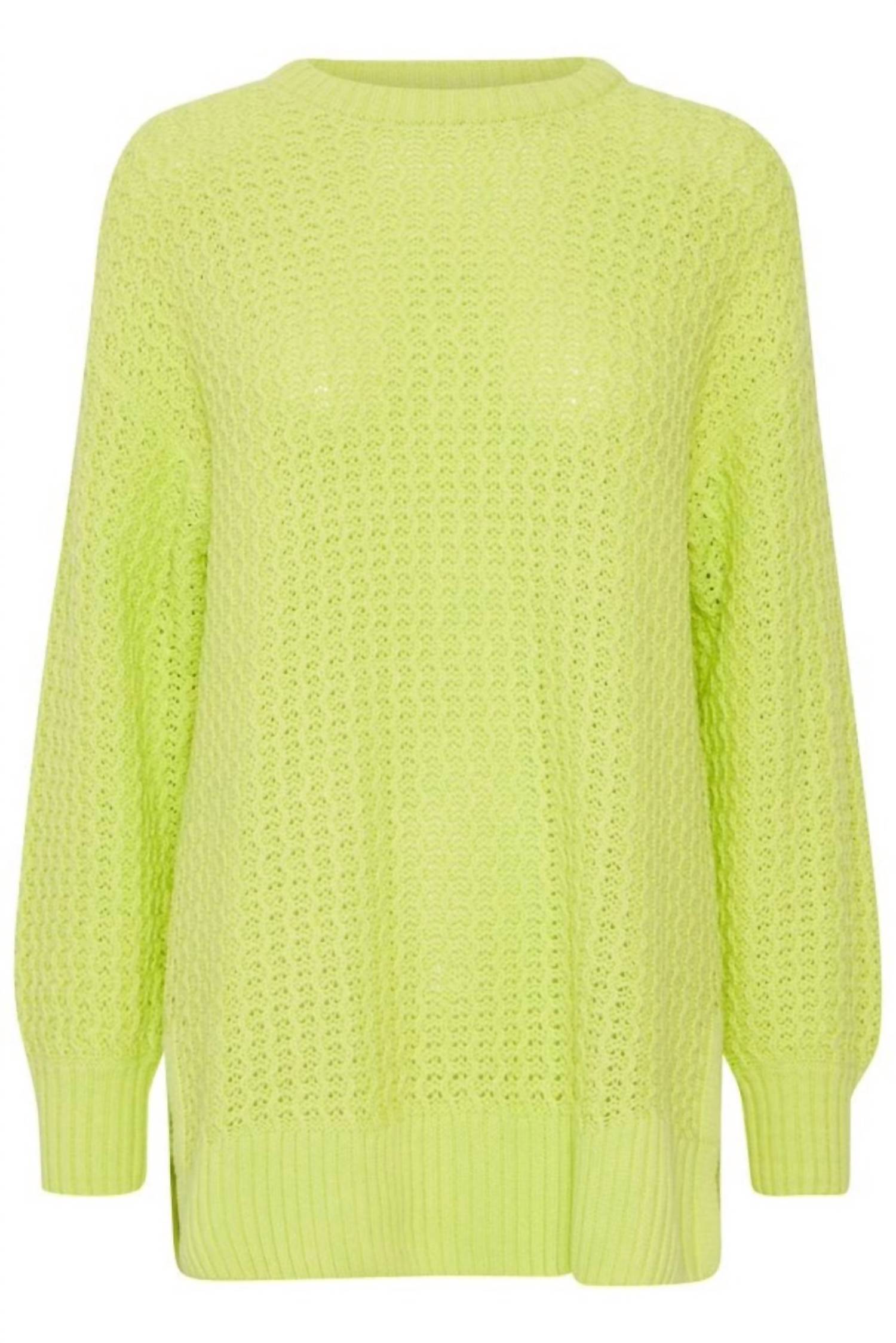 Tunic length sweater. Textured knit, crewneck. Split hems. Ribbed cuffs and hem. True to size. 60% Cotton, 40% Acrylic.