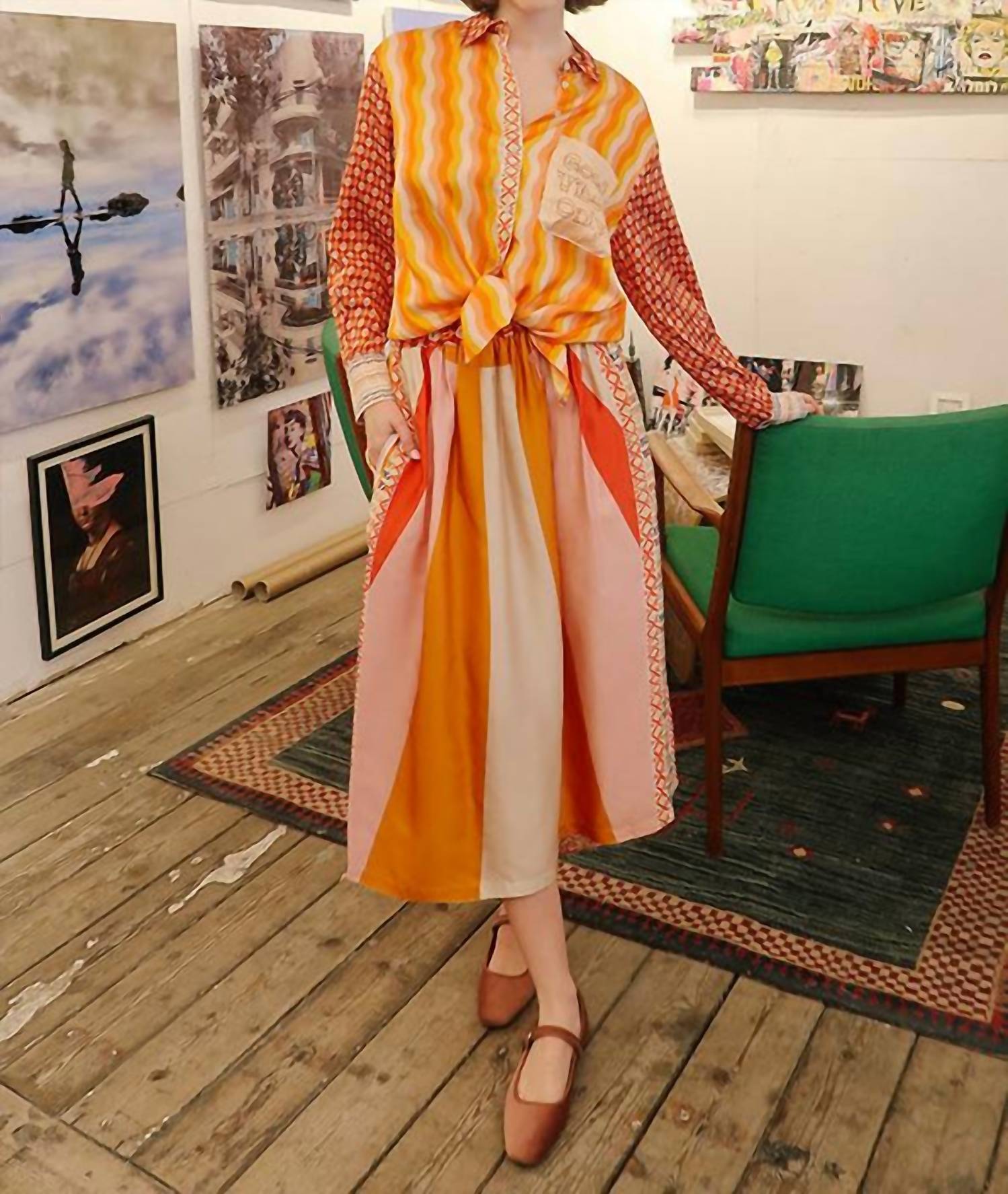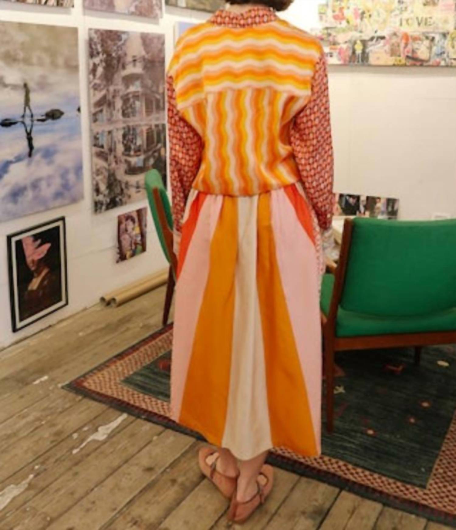 Show off just the right amount of skin in this beautifuly designed midi length skirt. Embrace the vibrant essence of the Orange Summer with Me369's Layla Midi Skirt, a perfect choice for a Boho Chic vacation. Crafted entirely from viscose, this patterned skirt offers a flowing silhouette ideal for spring adventures. With a convenient pull-on closure and added pockets for functionality, it's as practical as it is stylish. Care: Machine wash and tumble dry for easy maintenance.