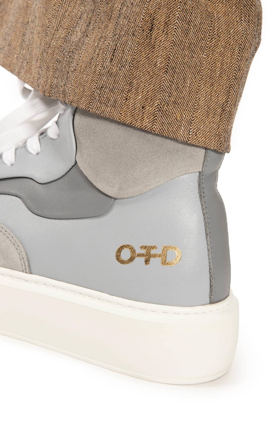 Expertly crafted in Portugal, these high-top sneakers feature a flat rubber sole topped with a mixed-leather upper—constructed in contrast textures of smooth and suede.