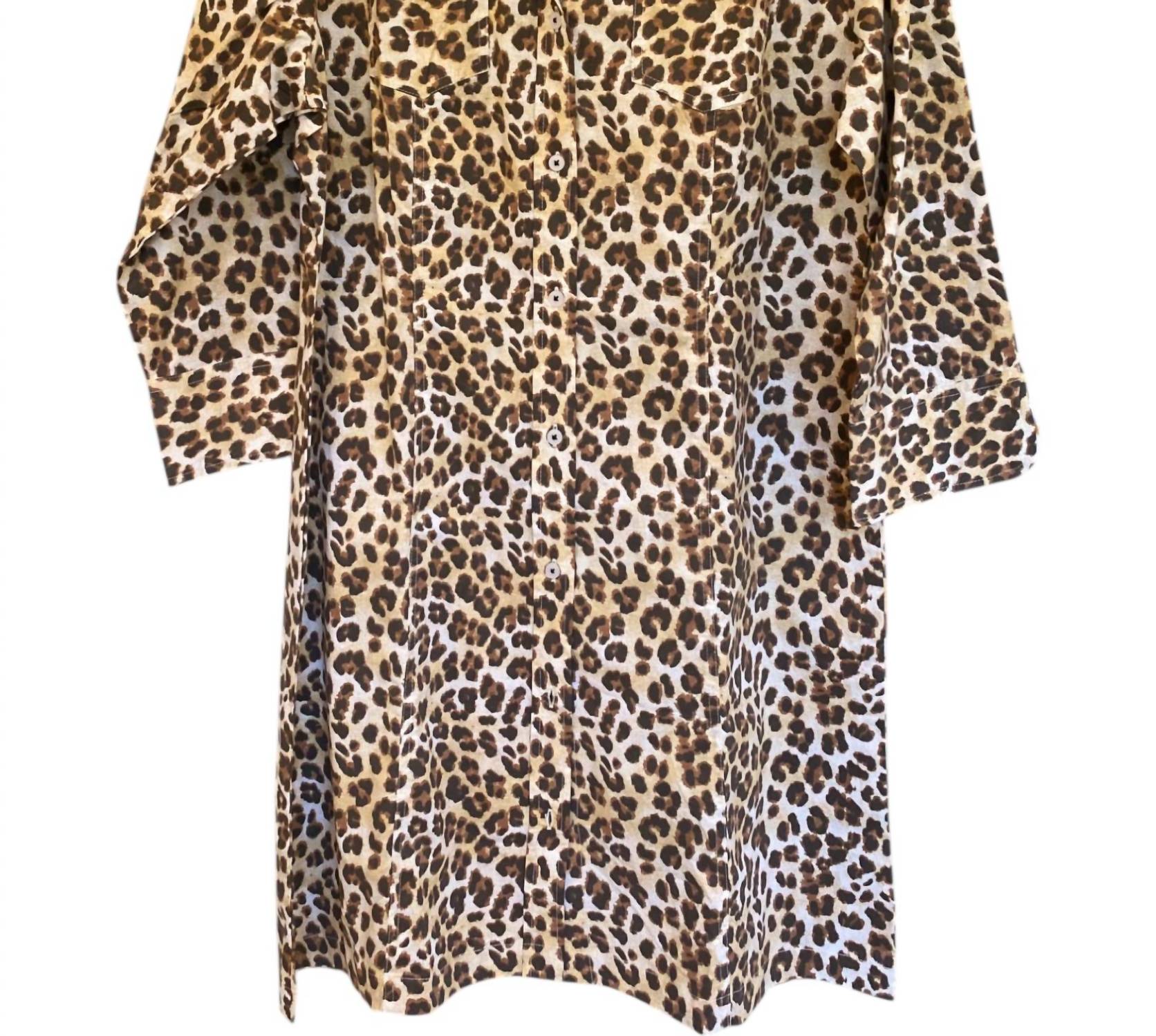 A flattering yet comfortable dress you'll be reaching for season after season. Captivating cheetah print long sleeve shirt dress. Made from lightweight Cotton Voile. Stylish and comfortable to wear. Designed with a classic collar and convenient button closure. Features handy pockets for added functionality. Care instructions include hand washing to maintain its vibrant look.