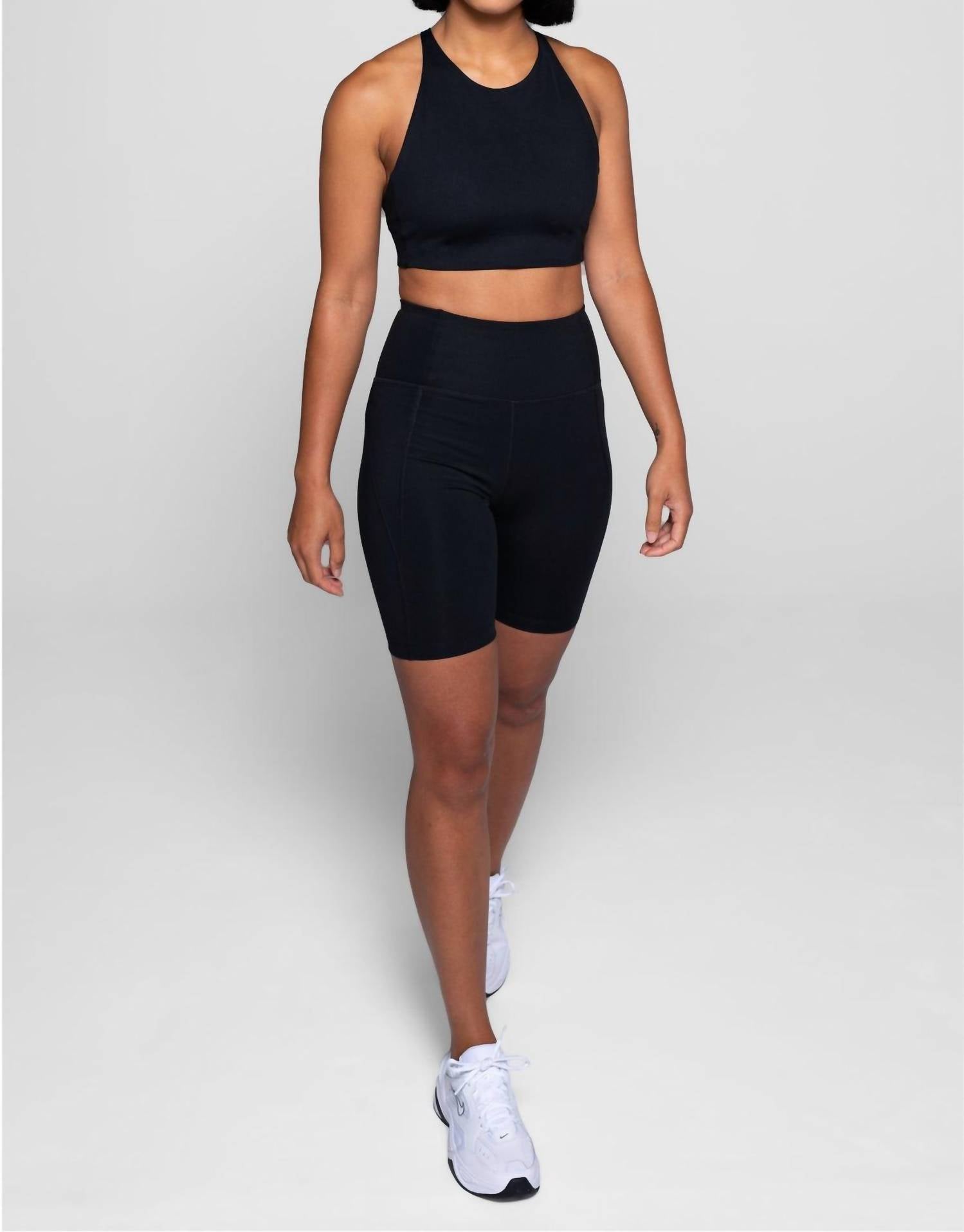 A sports bra that has it all - style, function and support. It features a high neck, low back, and adjustable criss-cross straps for secure wear. Crafted from 79% recycled plastic bottles (RPET) and 21% spandex, it offers a soft yet sturdy construction with four-way stretch for full coverage. Care: Machine wash, lay flat to dry.