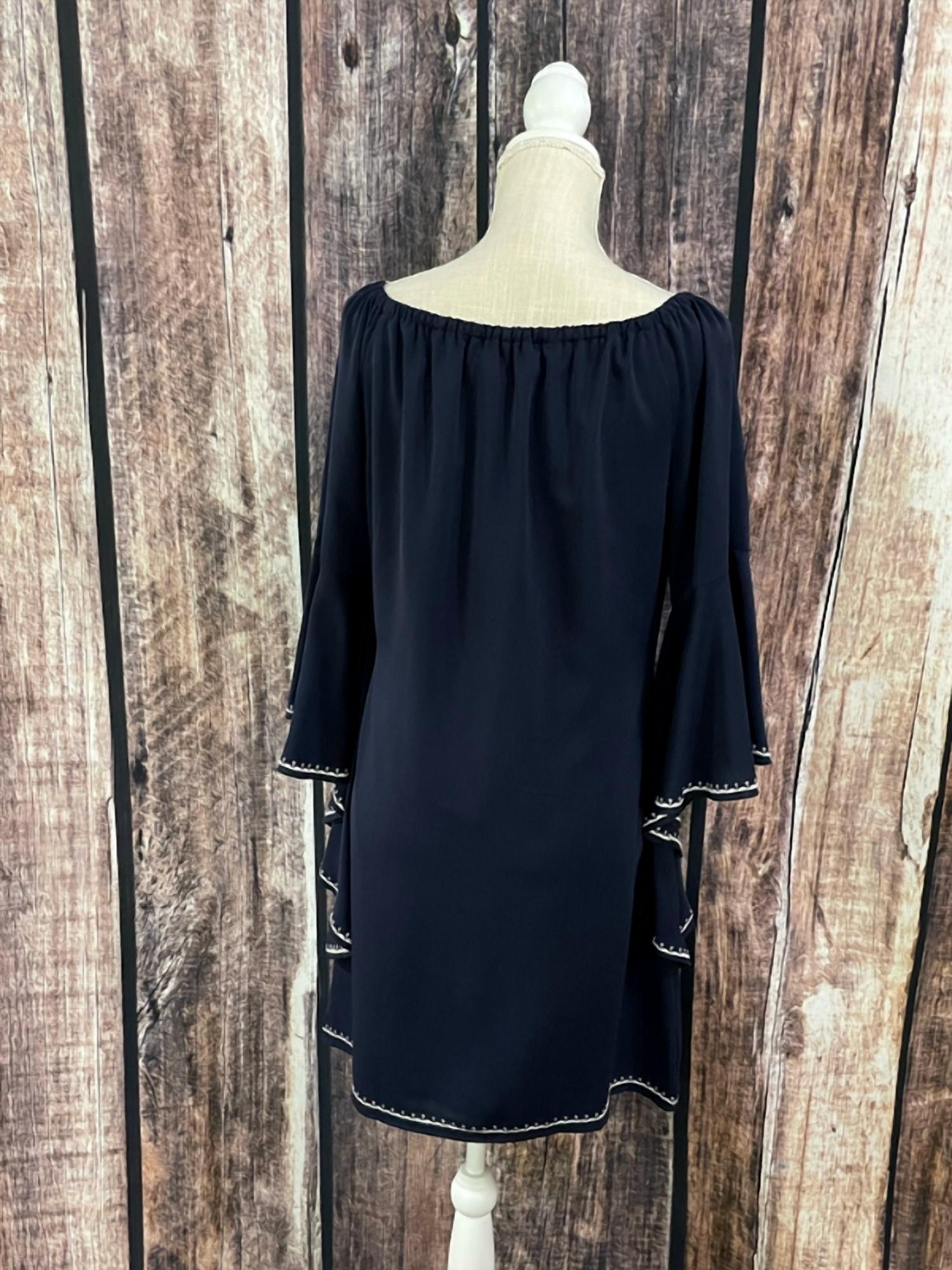 Rockwell Tharp's Signature Navy Adrianna Dress is stunning and the perfect dress for any occasion! It is timeless, classy and sets you apart from the other Ladies. This dress has beautiful belle sleeves that fall behind the elbow. We consider this your go to dress, whether in one color or all three. It's a winner!