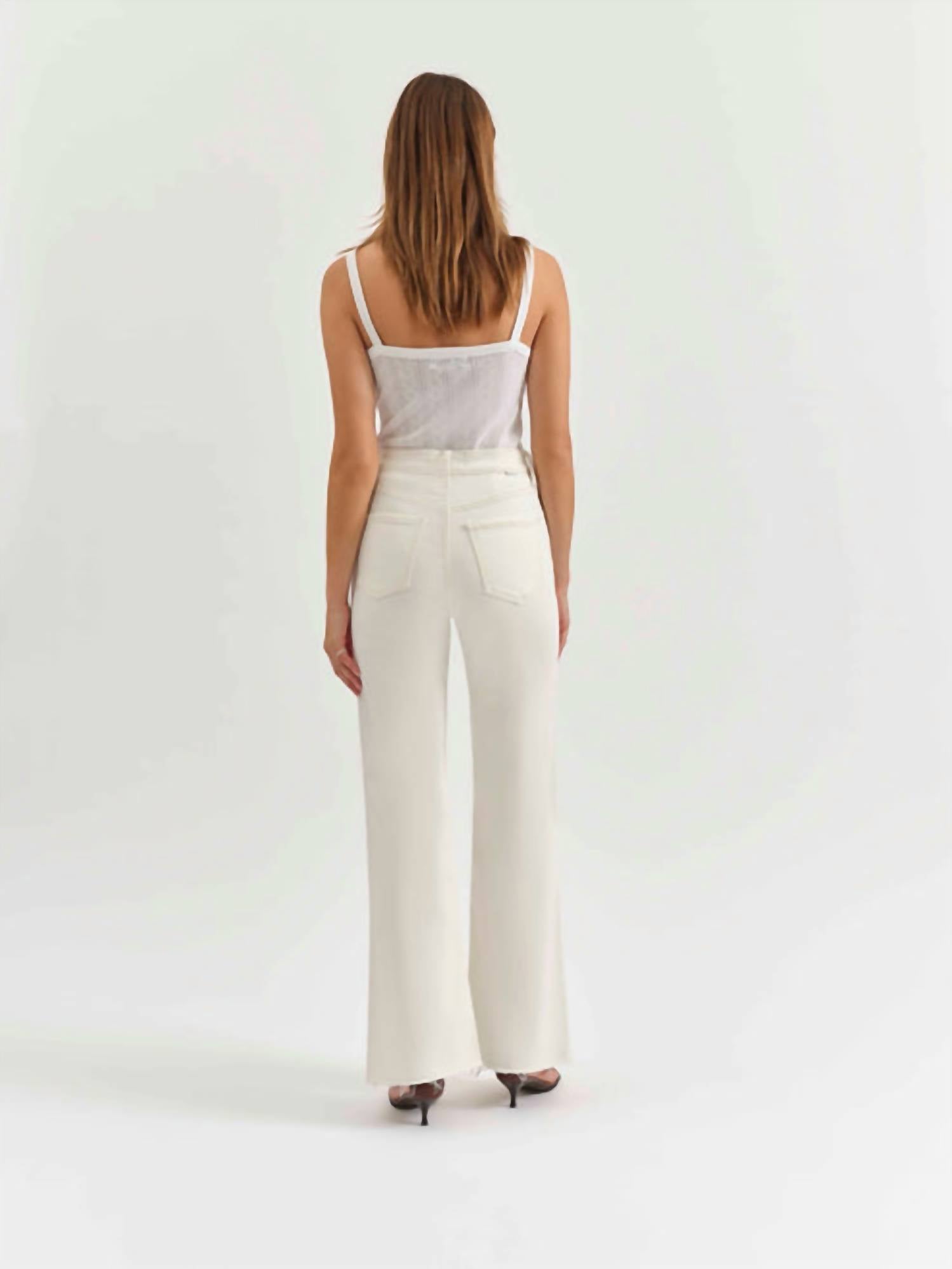 A flattering silhouette that's suprisingly versatile. Elevate your denim collection with the Far Out Straight Leg Jean by DAZE, a chic choice in a timeless cream hue. Crafted from a cotton blend, these jeans deliver both comfort and style with a relaxed fit and a high-rise waist, boasting an impressive 12" rise and a 32" inseam. Designed with a minimalist, wide-leg silhouette, they promise a flattering look for any summer vacation occasion. Closure: Button closure. Care: Machine wash.