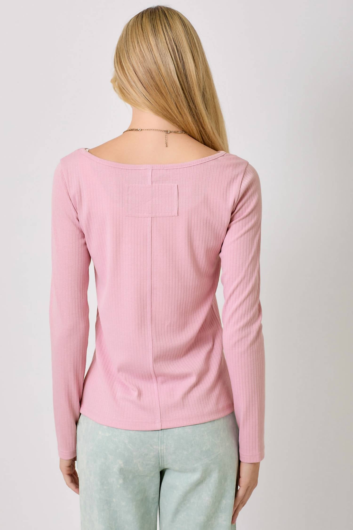 Great fit, cute design, soft fabric. You'll love everything about this long sleeve tee. Experience the elegance of the Penny Coverstitch Top by Mystree, designed in a charming orchid hue. With its long sleeves and soft, ribbed texture, this semi-fitted tee ensures a stylish yet comfortable fit. Crafted from 64% Polyester, 32% Cotton, and 4% Spandex, it features a vertical seam detail on the back and a crew neckline. Designed for convenience, its pull-on closure allows for easy wear, and it can be machine washed, making it perfect for travel and minimalist wardrobes.