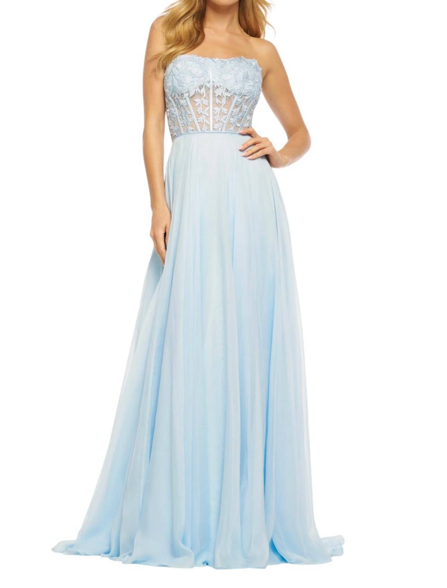Looking for that perfect event dress? Look no further... Step into elegance with the Strapless Delicate Floral Prom Dress by Sherri Hill. This A-line dress combines a whimsical, patterned design with intricate floral detailing for an unforgettable evening look. Enjoy a carefree night in this feminine piece, expertly crafted for women who love to make a statement. Perfect for any prom event, this charming dress allows your personality to shine through.