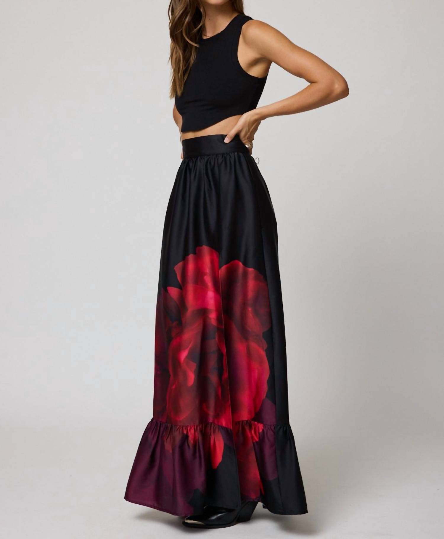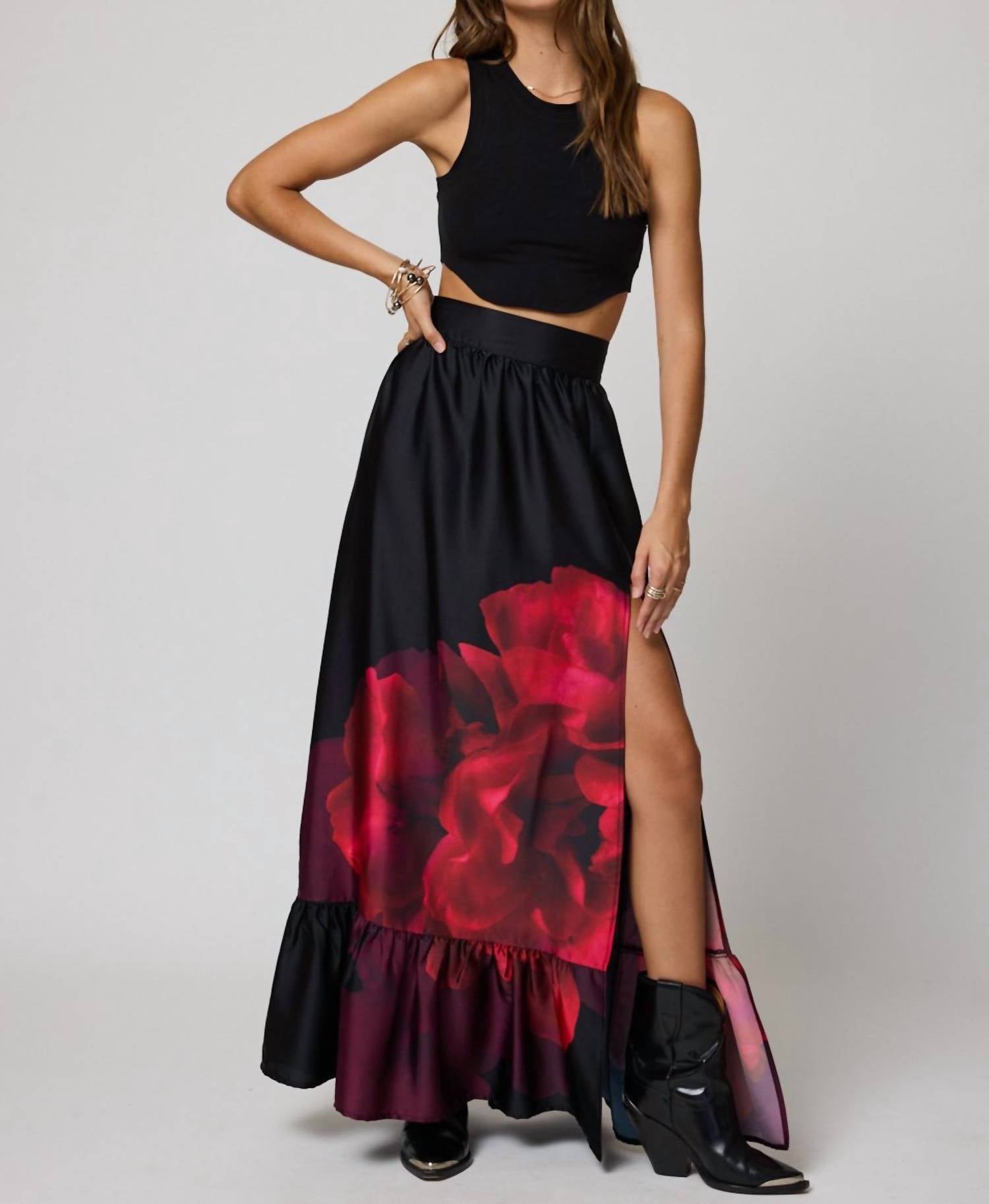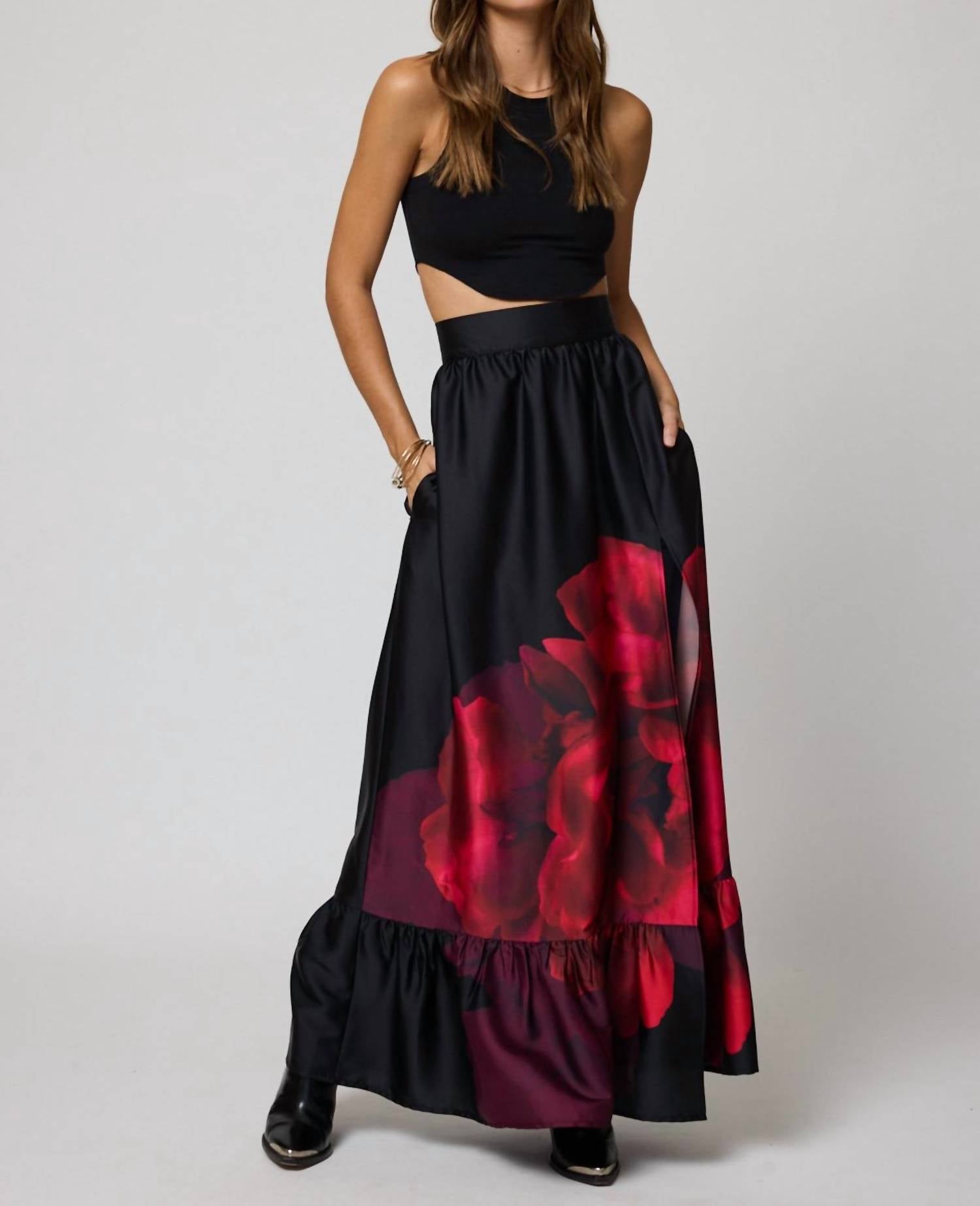 Who doesn't love a good maxi skirt? Introduce a touch of elegance to your wardrobe with the What If Maxi Skirt by Stillwater, now available in a captivating Midnight Rose floral pattern. This skirt features a dramatic high waist and slit, with the added convenience of pockets. Crafted from 97% satin polyester and 3% spandex, it offers a flattering and comfortable fit. Pull-on style. Dry clean only.