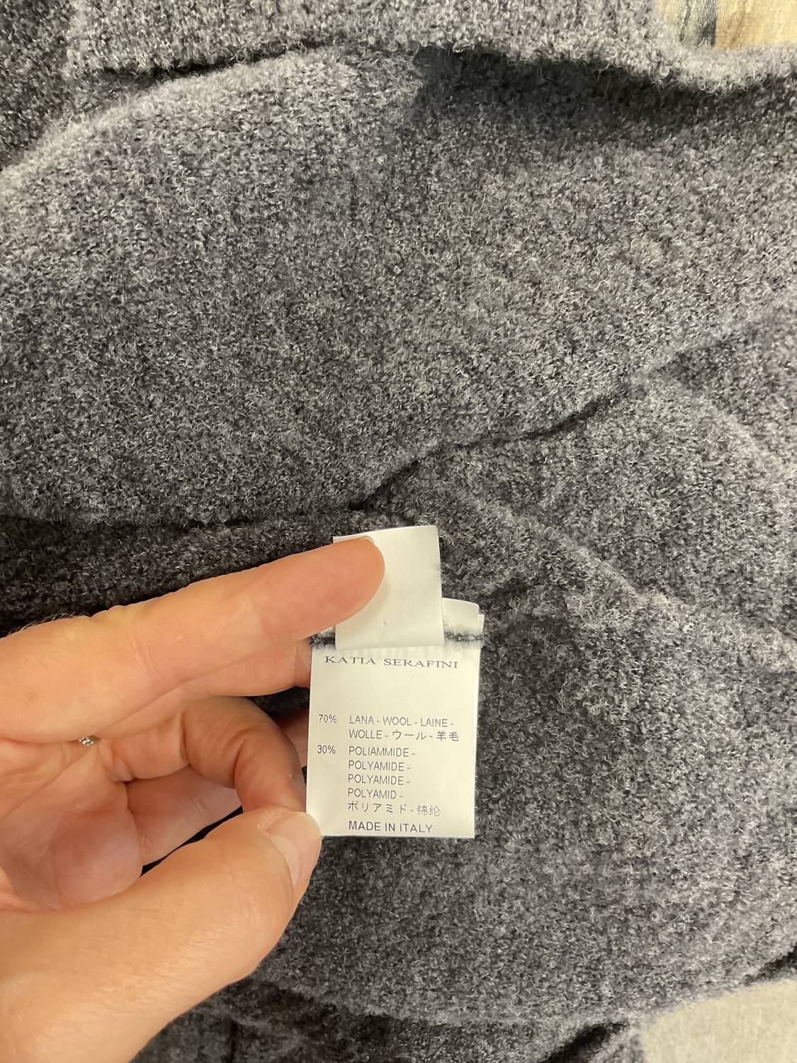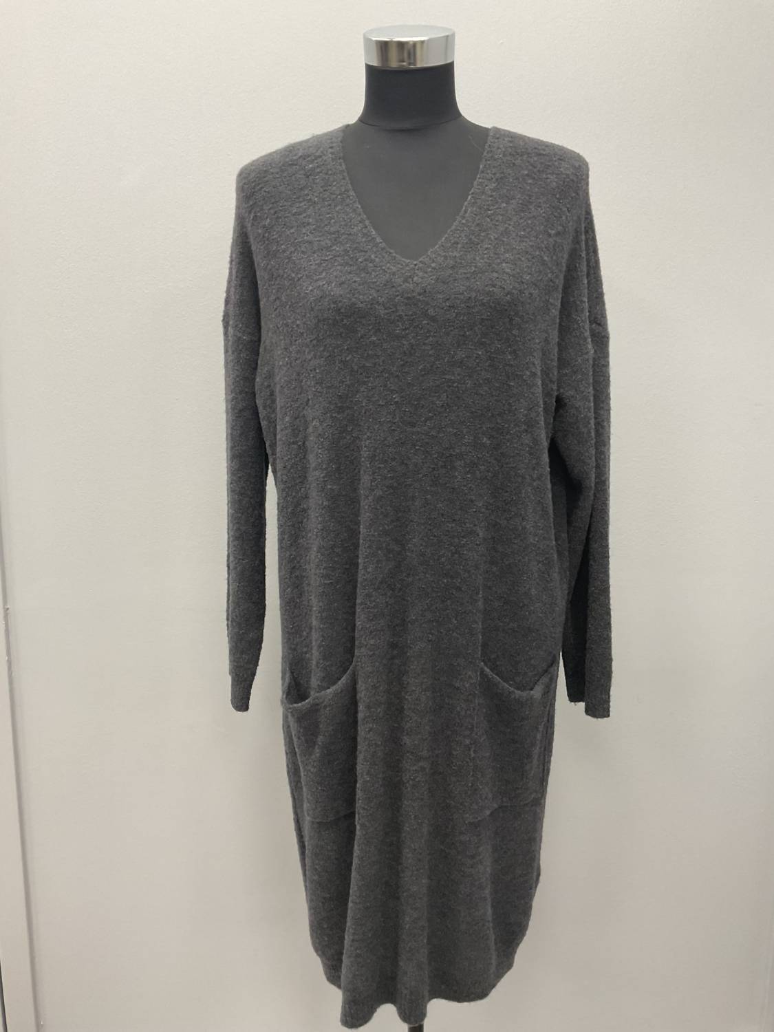 Charcoal v-neck dress. Soft and comfortable. 70% wool/30% polyamide. Made I pan Italy