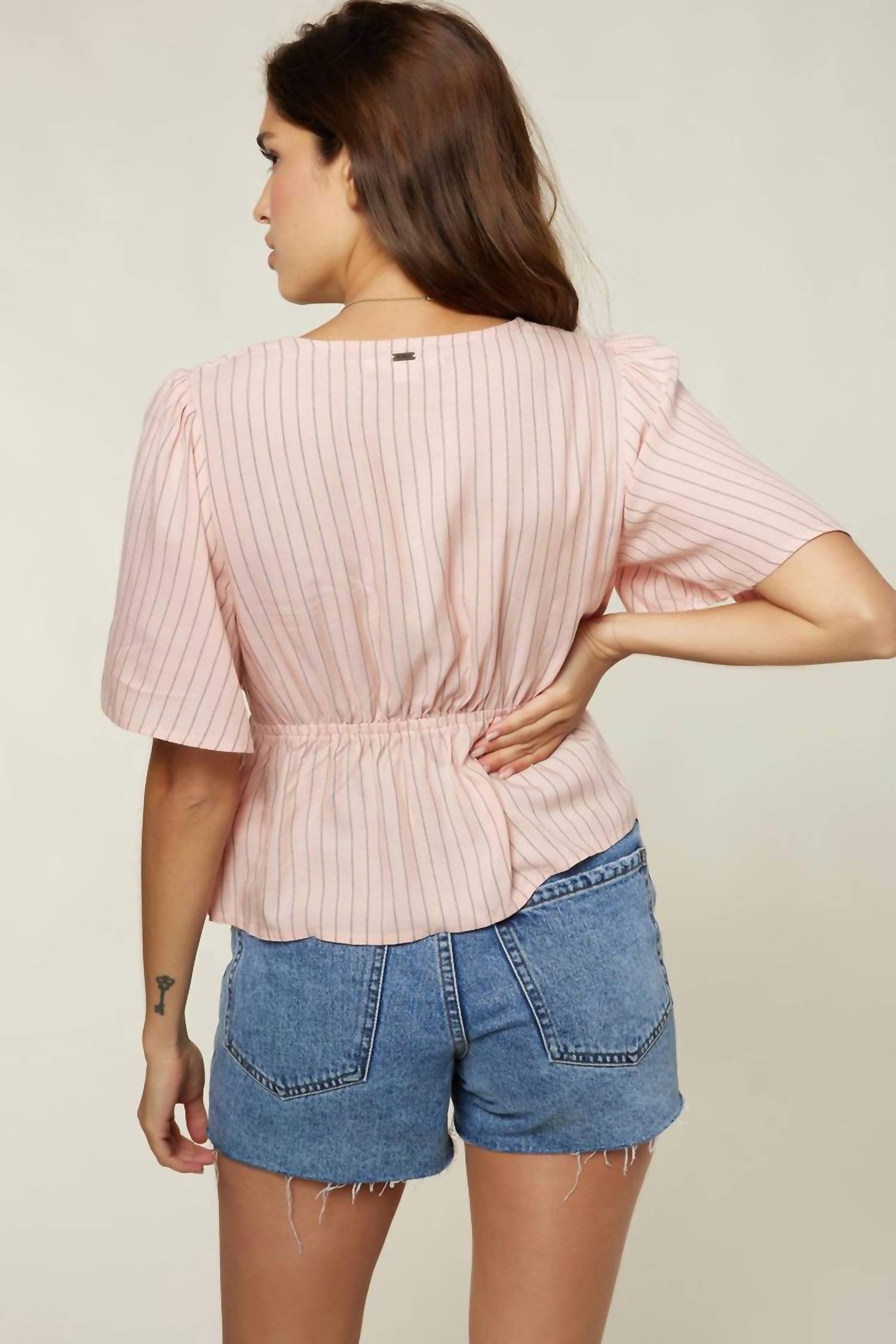 Show a little skin in this cute and casual crop top. Elevate your casual wardrobe with this O'Neill woven top, featuring a refined v-neckline and front button closure. The skimmer silhouette hits at 20 inches, offering a flattering, versatile fit for everyday wear. Crafted from luxurious 100% viscose, the allover print adds visual interest while the signature metal logo badge provides authentic O'Neill branding.