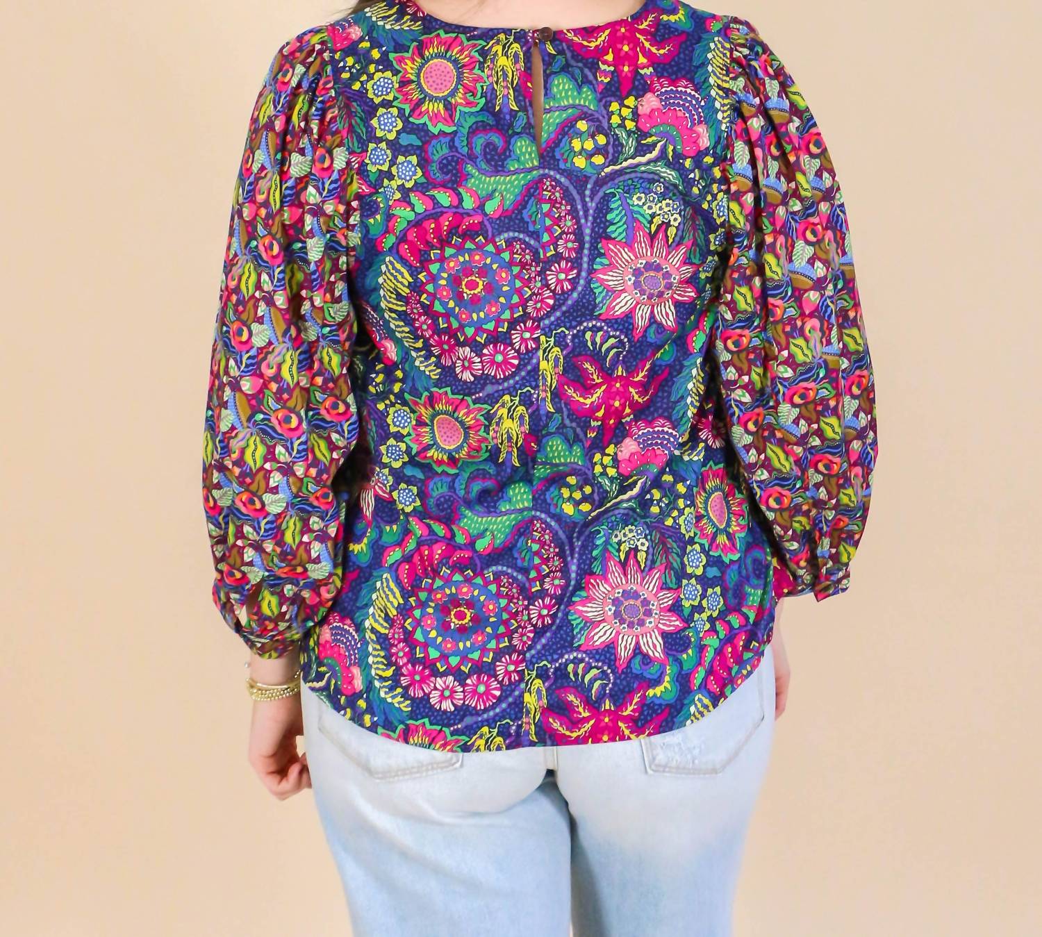 Pair this with your favorite jeans and slides for your next girls night out. Unveil elegance with the Ivy Jane Botanica Top, a stunning piece for your summer wardrobe. Featuring three-quarter sleeves and a classic crewneck, this vibrant multi-color blouse is adorned with an intricate botanical pattern. The top is tailored for women who cherish style and comfort without sacrificing sophistication. Closure: Button closure.