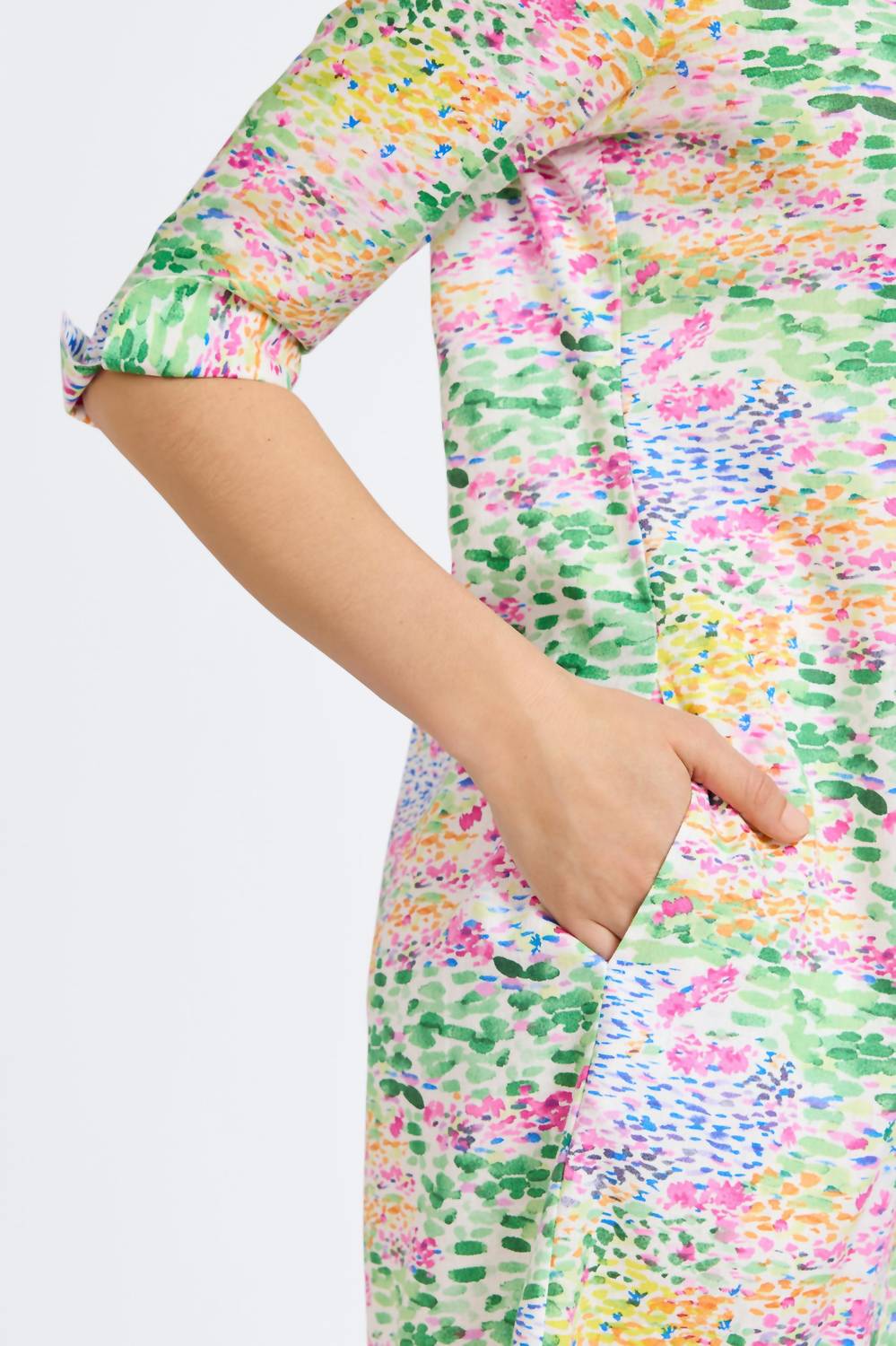 Just add slides or mules and you are good to go. Introducing the Foxcroft Vena Linen Three Quarter Sleeve Dress, a timeless midi piece adorned with an impressionist floral pattern. Crafted in a linen blend, it features a flattering sheath silhouette with a graceful V-neckline and practical pockets. This dress boasts a convenient zip closure, designed with both elegance and versatility in mind. Care for this art-inspired garment is a breeze—simply machine wash and tumble dry to maintain its effortless charm.
