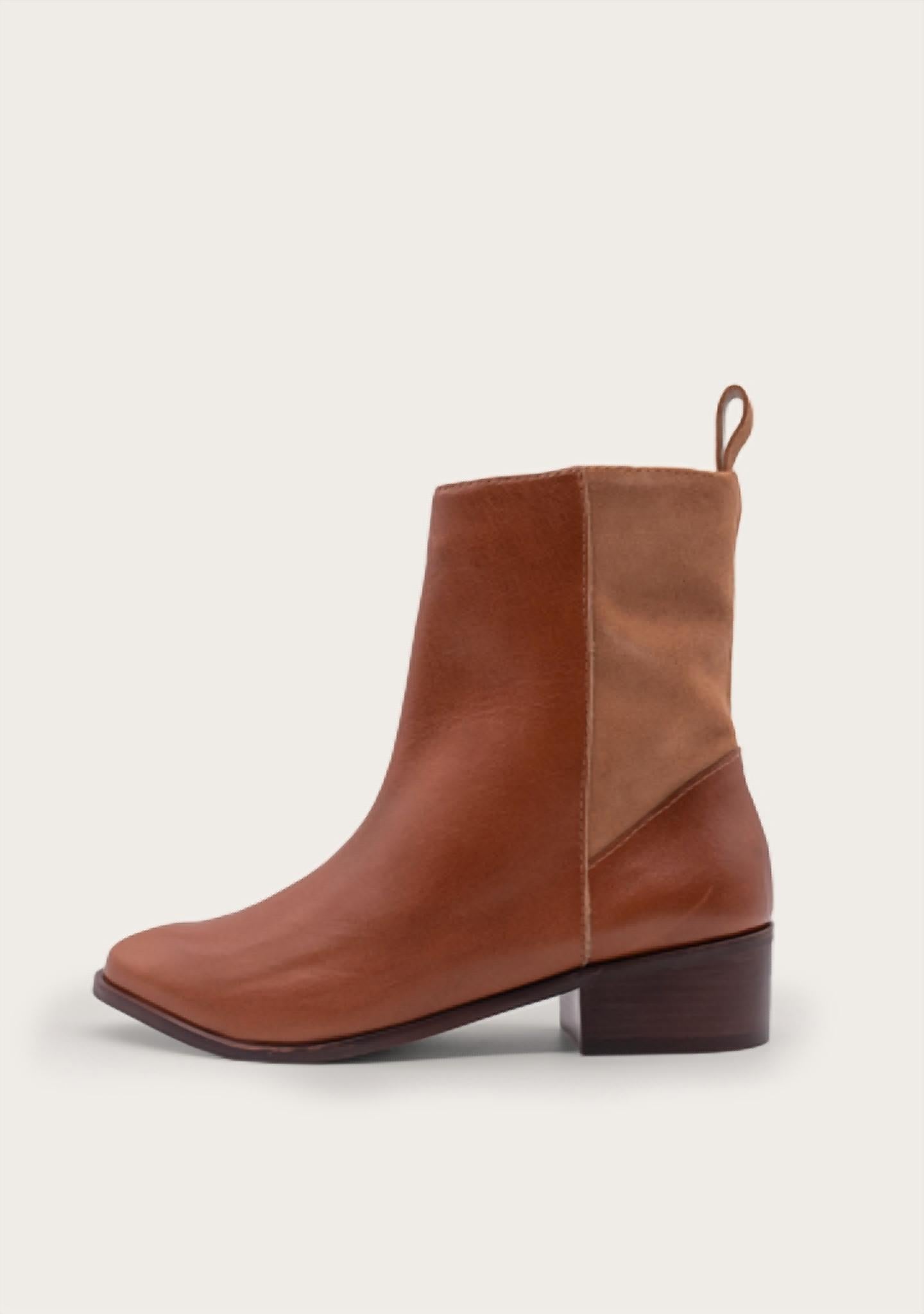 Say hello to the perfect, most versatile boot. The ankle height makes this style easily transition from day to night. Wear them with your favorite skinny jeans and tee for a more laid back look, or pair them with your favorite mini dress and jacket for a night out on the town. Discover the Women's Antares Distressed Ankle Bootie by KAANAS, perfect for your Fall wardrobe in a chic toffee shade. These ankle boots feature a stylish pointed toe and a comfortable block heel, crafted with precision in Brazil. Side zip.