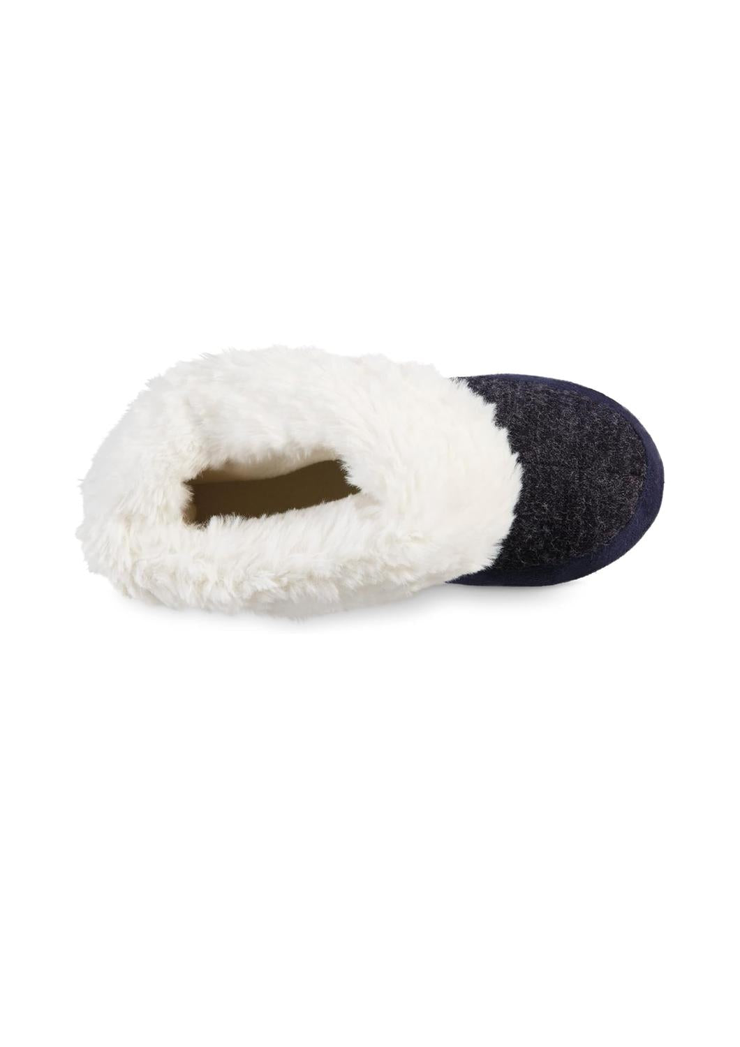 So comfy it's like you're walking on clouds. Introducing the Women's Heather Knit Marisol Boot Eco Comfort Slipper by Isotoner, an eco-friendly choice in sophisticated Navy Blue. These slippers are crafted from ECO Comfort fabric, which converts water bottles into durable and comfortable fibers, featuring a heathered knit design. The boot style, equipped with a soft fleece lining and cushioned memory foam, offers luxurious softness and a custom fit from heel to toe. Designed with a durable outsole for both indoor and outdoor wear, these slippers are easy to care for with a machine wash in cool water and flat drying.