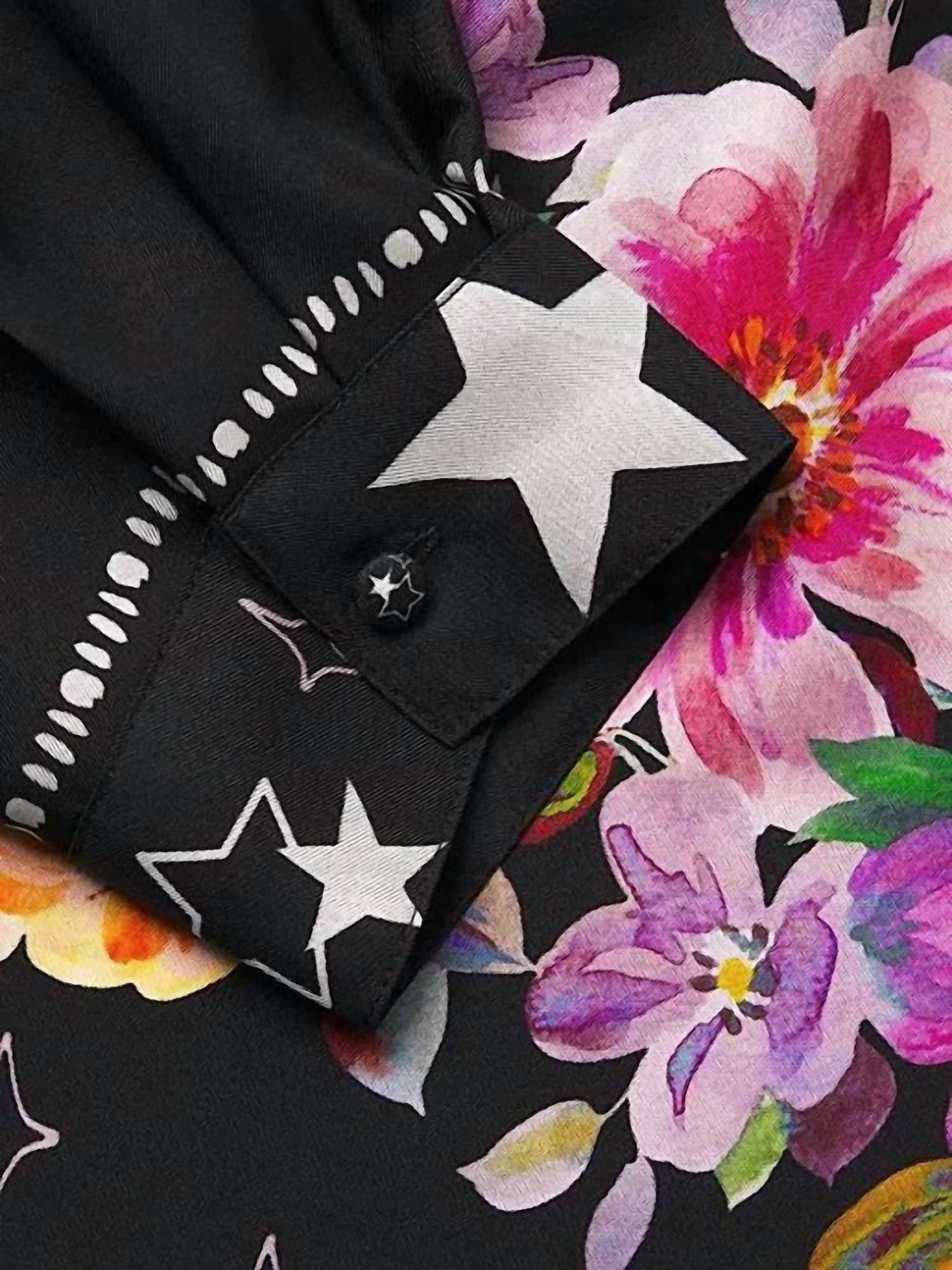 Perfectly tailored and soft to the touch. The Rosalynda Button Down Shirt is crafted from a distinctive silk blend and adorned with vibrant floral embellishments in bold tones. Featuring a classic collared button front, this blouse is elevated by contrasting patterns along the button placket and hemline, adding a unique and stylish touch to a timeless silhouette.