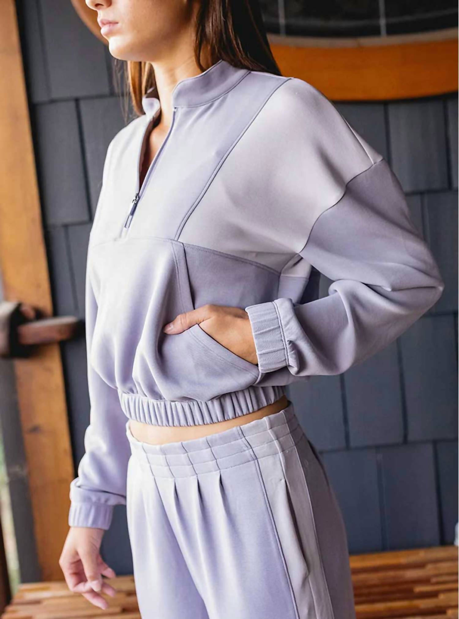 Cute, casual, and comfortable. This jacket is a must have. Introducing the Iris Purple Blocked Half Zip Pullover by THRIVE SOCIETE, a casual jacket that effortlessly combines style and comfort. This long sleeve pullover is crafted from a luxe scuba fabric blend of 48% Modal, 48% Polyester, and 4% Spandex, offering a super soft hand feel. It features a half zip closure and a mockneck design, making it versatile for layering on cooler days. Care for this piece is easy: simply machine wash cold in a gentle cycle with similar colors and tumble dry on low.