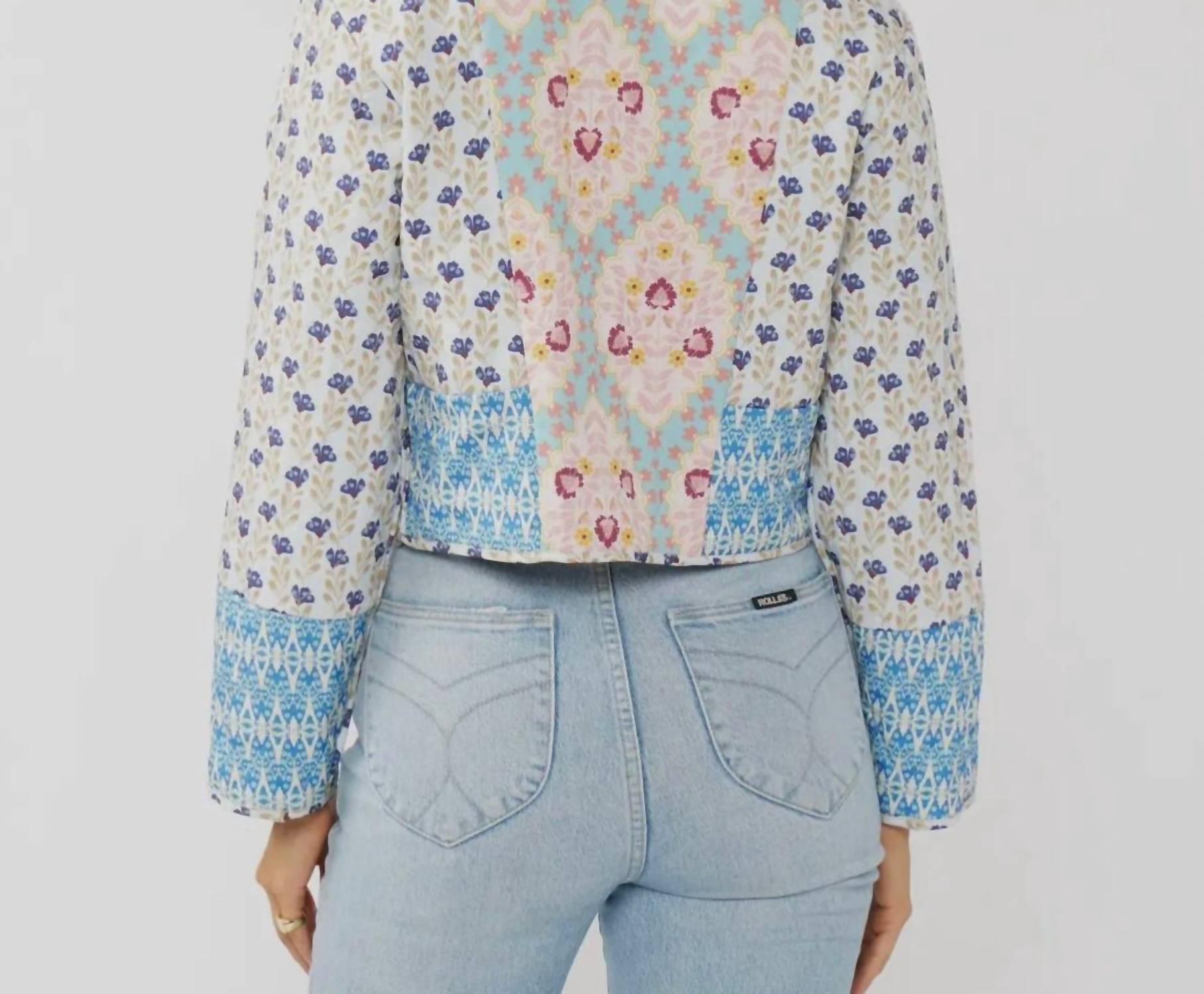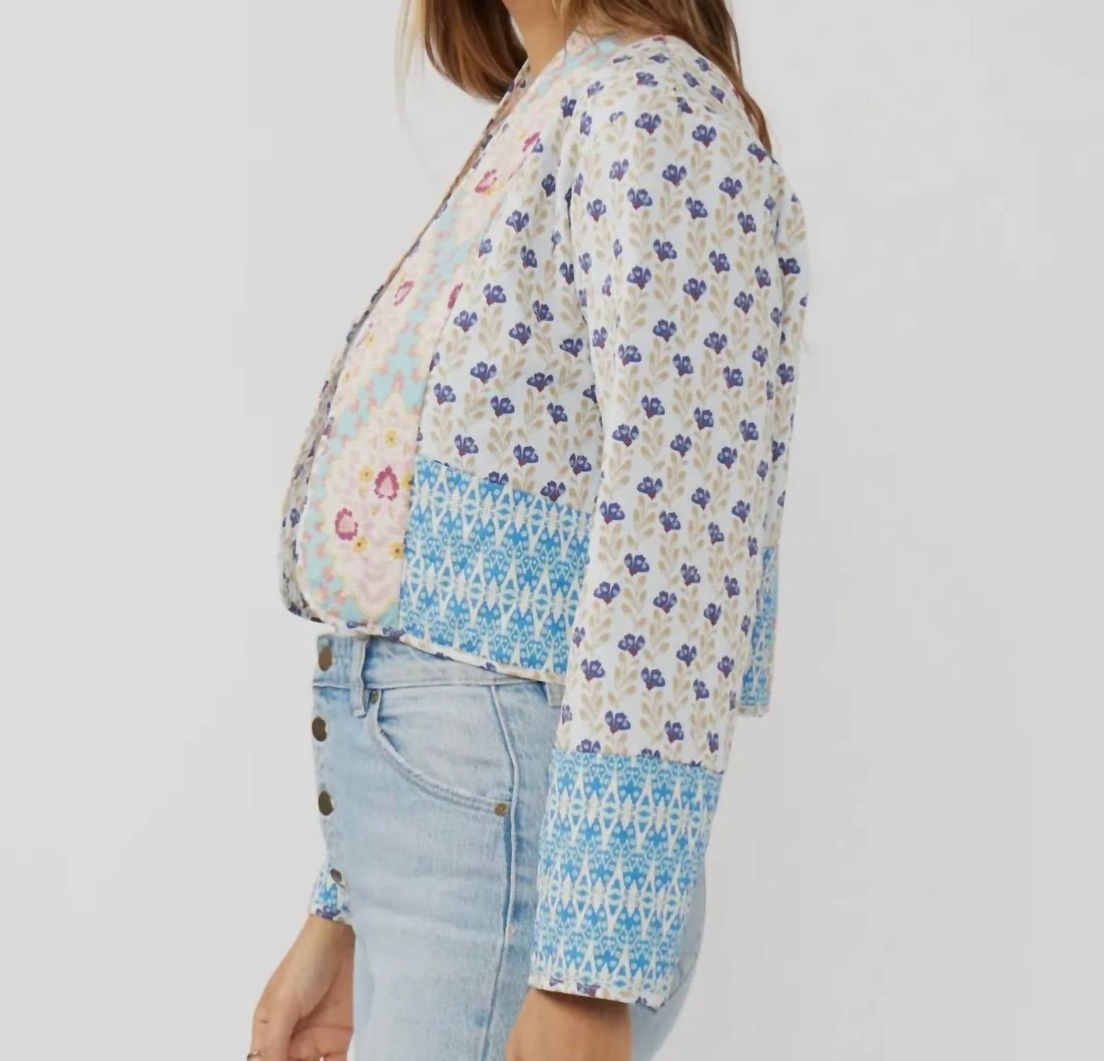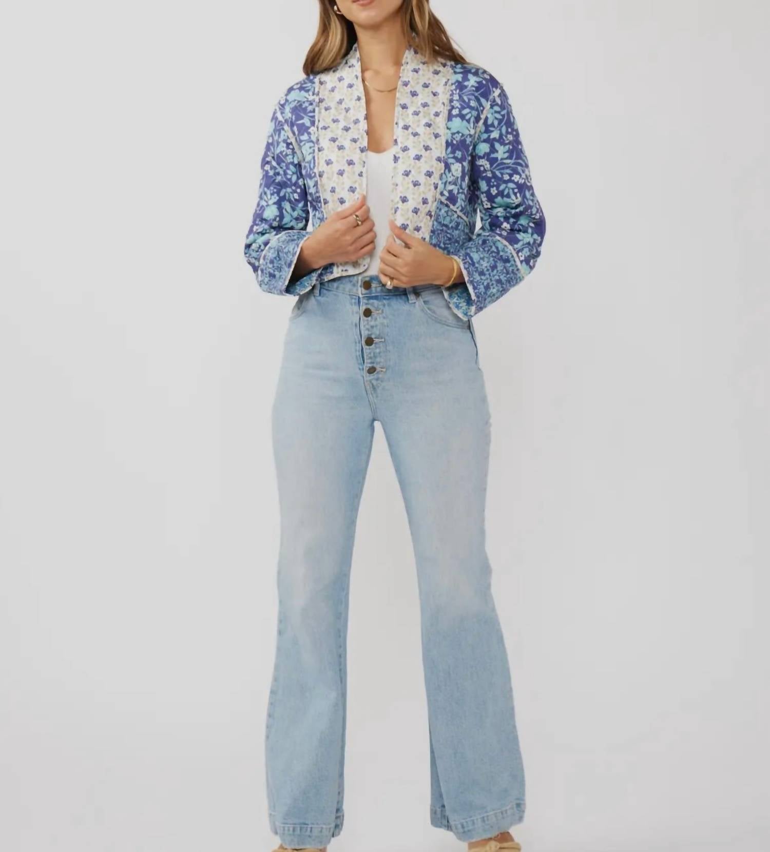 A jacket so versatile you can literally wear it with anything. Enhance your spring wardrobe with the Julianna Reversible Jacket by LOVESTITCH, featuring vibrant floral prints on both sides for a playful twist. This casual jacket has a collarless V-neck design with long sleeves and a convenient pull-on closure. Crafted from 100% polyester, it boasts a cropped length, offering a stylish yet functional addition to any outfit. Available in blue multi, this piece fits true to size, ensuring a comfortable and relaxed fit.