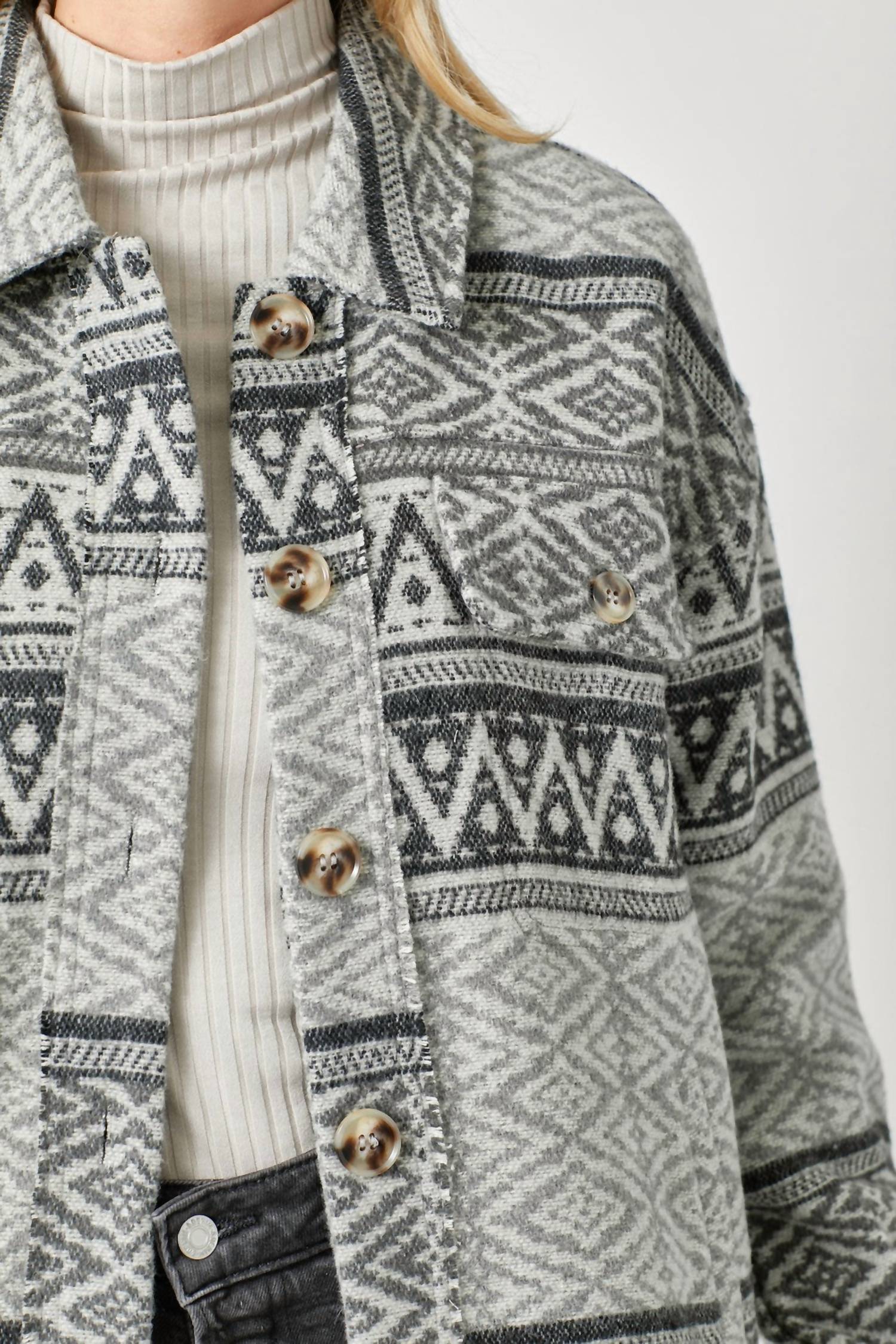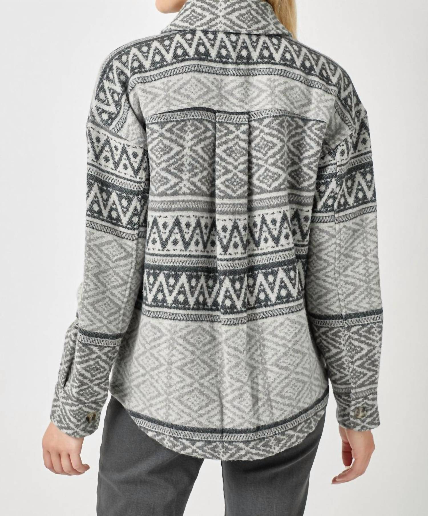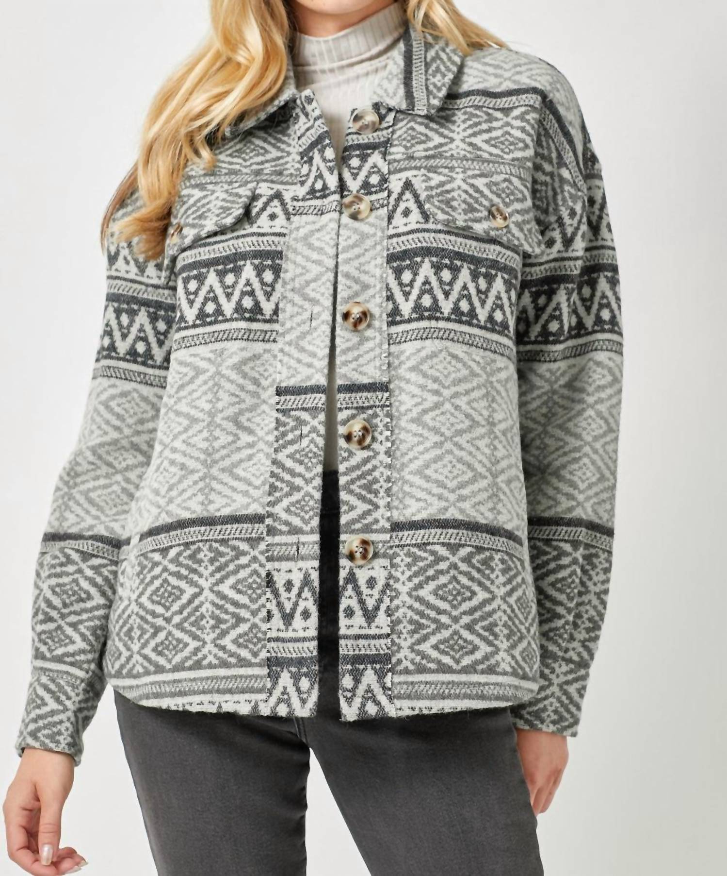Introducing the Nichole Jacket by Mystree, a chic and functional option for your outerwear collection. This jacket boasts long sleeves and is crafted from a blend of 95% polyester and 5% wool, with a lining of 80% polyester and 20% cotton for added warmth. Originating from an undisclosed location, it features a convenient button closure, collar neckline, and practical side and bust pockets. The stylish grey/charcoal pattern ensures versatile wearability.