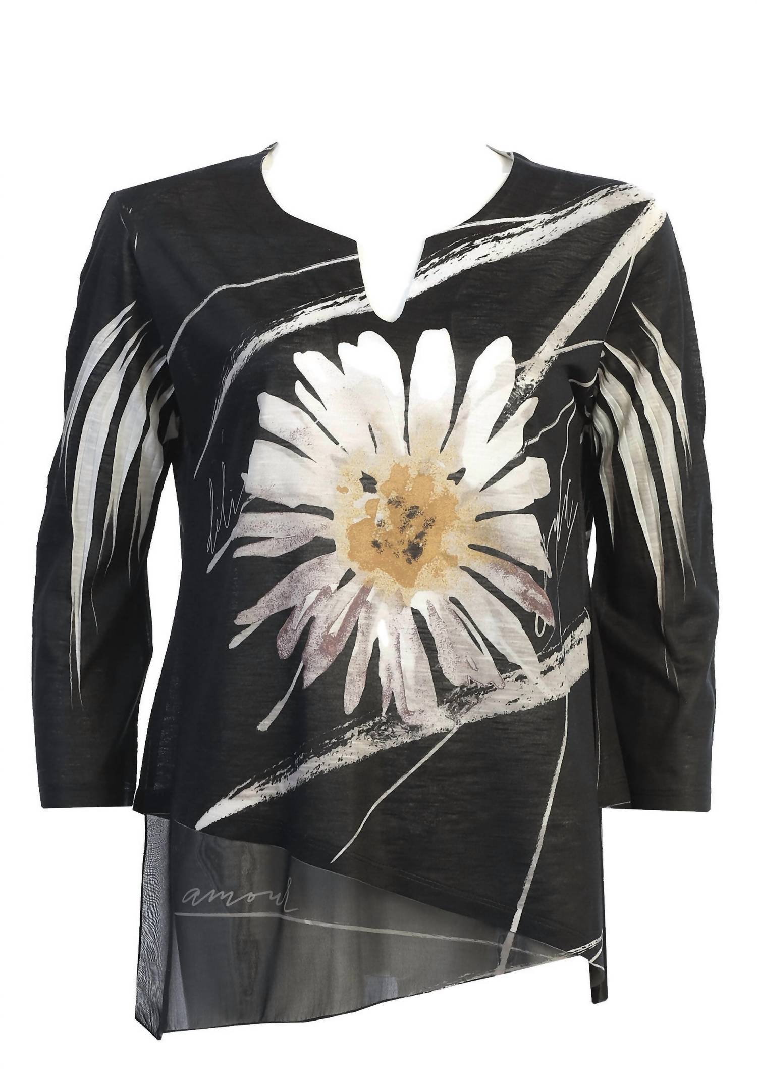 Jess & Jane - Women's Chit Chat Slit V Neck Chiffon Contrast Top