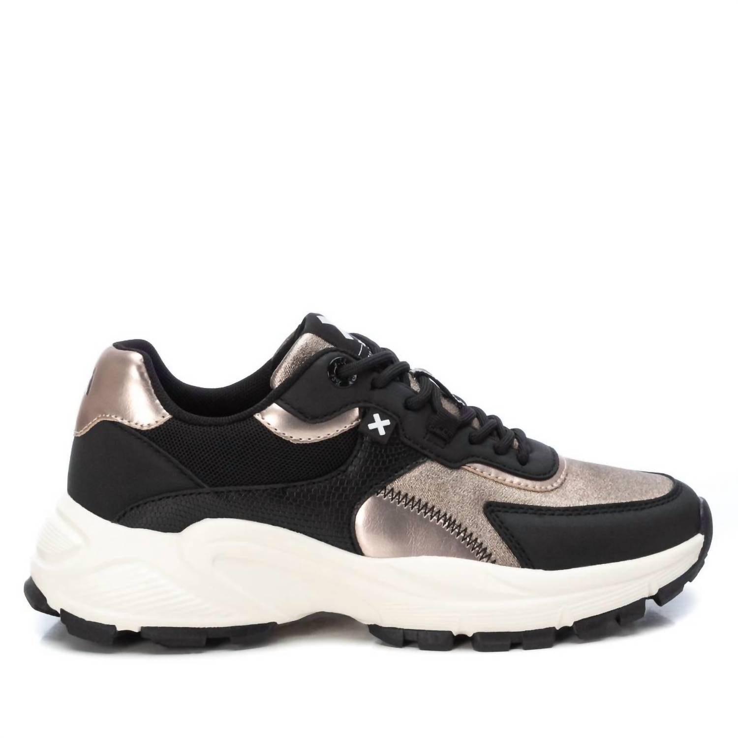 Made of material that imitates skin. Lace closure for greater fit. Metallic details. Non-slip rubber sole. With removable insole.
