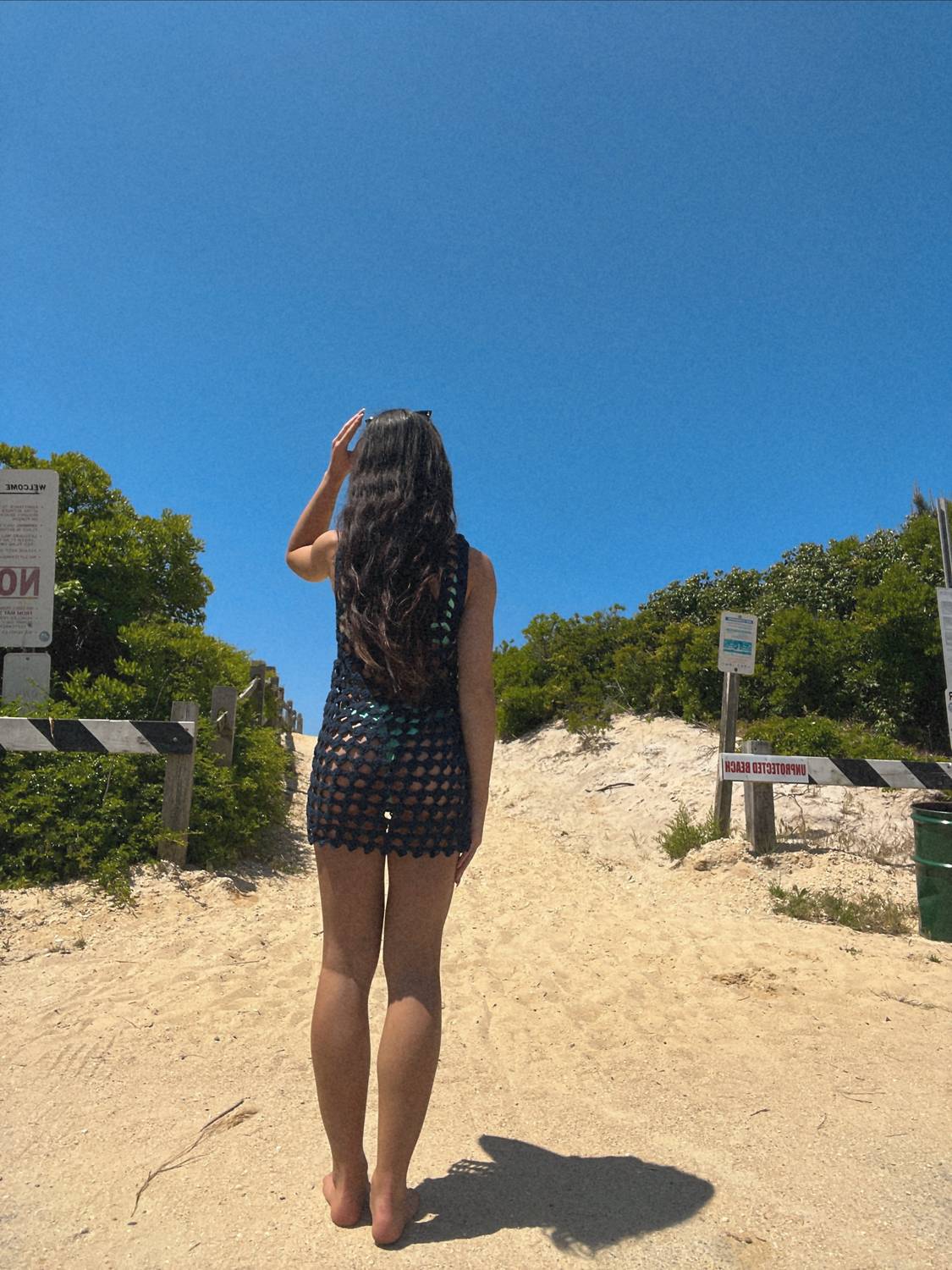 The perfect mini dress for those warmer months. The Emerson Mini Crochet Dress by LUSANA embodies boho chic with its sleeveless, open-knit design in elegant navy. Crafted from cotton, this sheath silhouette highlights hand-crocheted artistry and community support in West Bali, Indonesia. It features a crewneck with a tassel tie trim and an open back, perfect for layering over separates or swimwear for a beach day. Closure: Pull on.