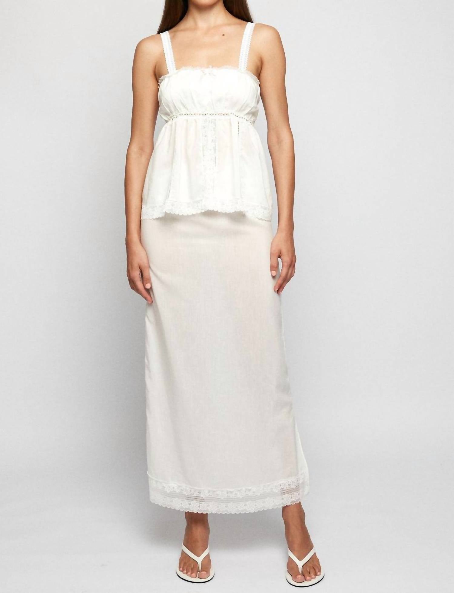 A versatile blouse that works from desk to dinner! The Lace Babydoll Top by SWF in Antique White is a vintage-inspired piece perfect for romantic occasions like Valentine's Day or a baby shower. Featuring spaghetti straps and a flowing design, this feminine blouse is crafted from a textured viscose blend, ensuring comfort and breathability. With a squareneck and delicate lace trim, it offers a structured yet soft silhouette with no pockets. Closure is pull-on, care includes hand wash and lay flat to dry.