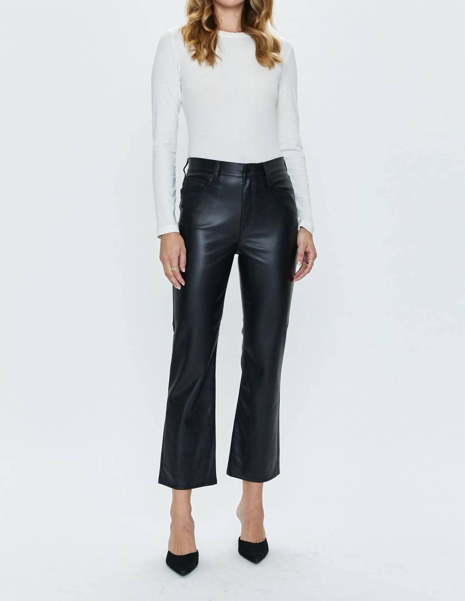 Just add boots! Elevate your wardrobe with the Pistola Lennon High Rise Cropped Boot Pant in Slate Black, a must-have for any stylish dinner party. Crafted from 100% Polyurethane, this slate black pant is sleek and chic with a bootcut leg that hugs you from the hips to the knee before flaring out for a flattering silhouette. Made in China, it features a zip fly with button closure and practical 5-pocket styling, making it as functional as it is fashionable. Designed in a buttery soft alt leather, it offers a comfortable fit with easy maintenance, being machine washable to keep you looking effortlessly polished.