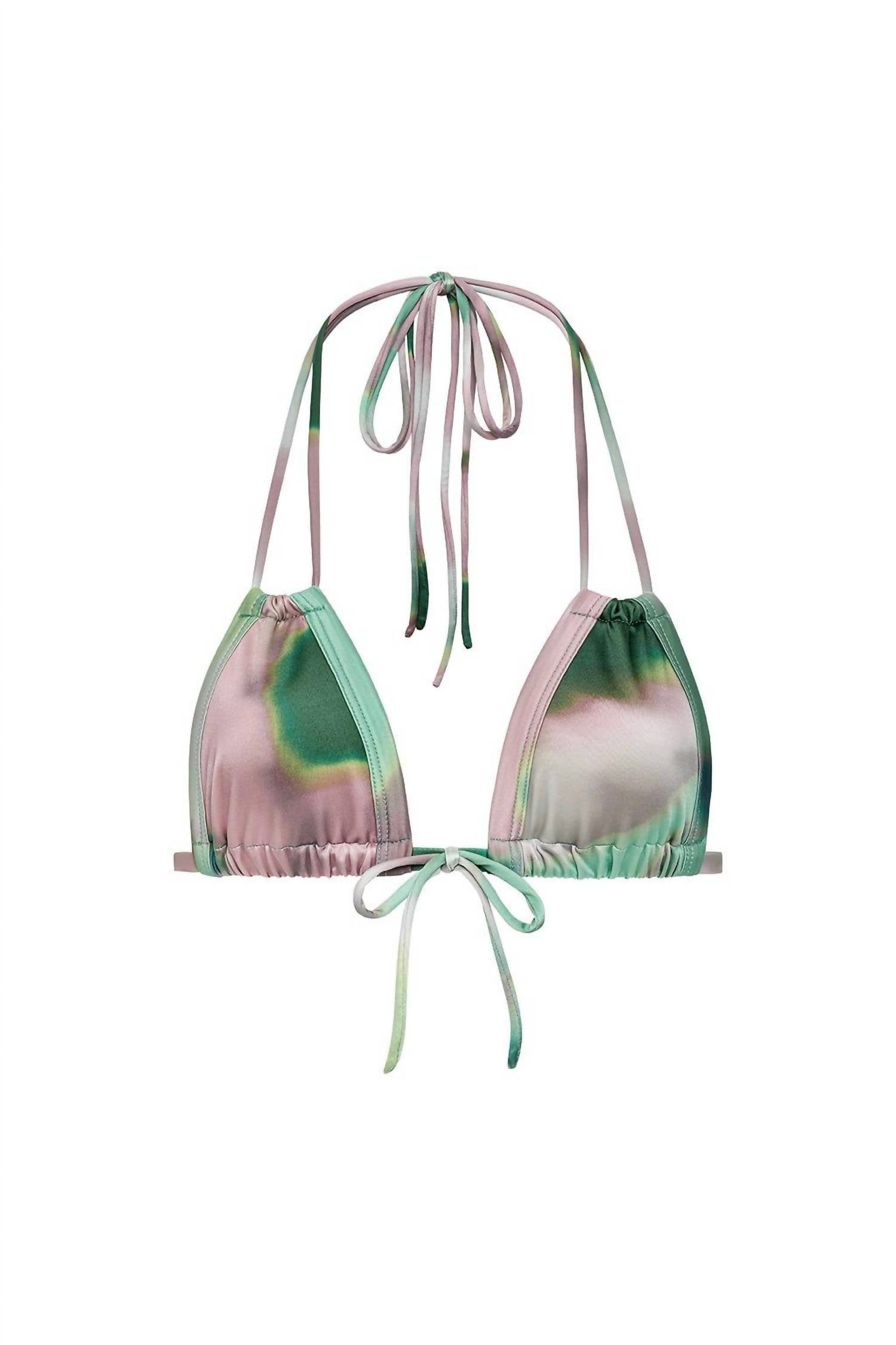 Dream of your next beach getaway in this cute little number. Pair with strappy sandals, a floppy hat, and an oversized tote to complete the perfect vacation look. The Euro Bow Bikini Top by Montce combines style and function with its vibrant Silk Dye tie-dye pattern. Featuring fully adjustable double halter straps and a triangle top design, this swim top offers medium support and versatile fit options, including an adjustable cup and removable bow detail. Made from 80% recycled nylon and 20% spandex knitted fabric, it provides UV protection with UPF 50+ and is OEKO-TEX certified, ensuring high quality and eco-friendliness. Care instructions recommend hand washing and line drying to maintain its delicate structure.