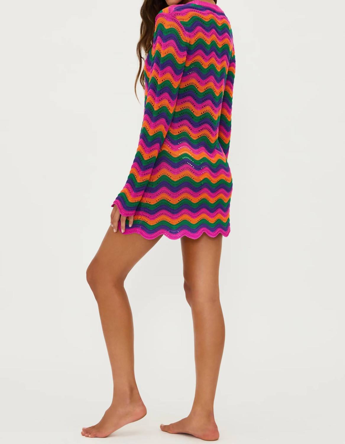 The kind of easy and flattering dress you'll be reaching for all season long. Slip into the Libbi Mini Dress by Beach Riot for a vibrant vacation look this spring. Made from 100% viscose, this open knit mini cover-up dress features a stylish crewneck and trendy bell sleeves for added flair. Designed in a multicolor stripe pattern, it highlights a playful A-line silhouette perfect for warm getaways. With its convenient pull-on closure, it's an effortless choice for beach days or tropical escapes.