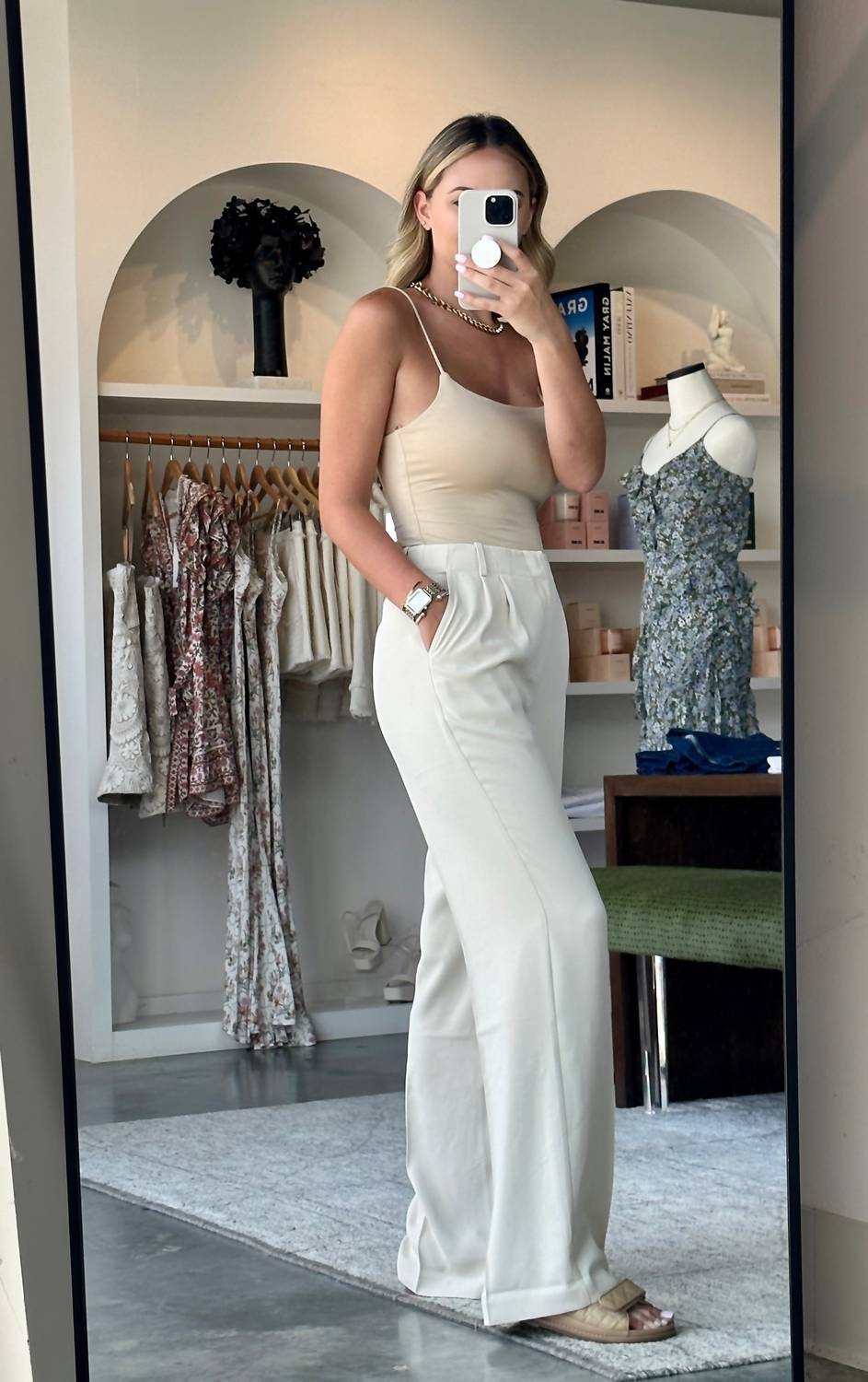Nayelle Cream Bodysuit. Slender, cami-inspired straps. Stretchy bodysuit that always stays tucked for a polished look.