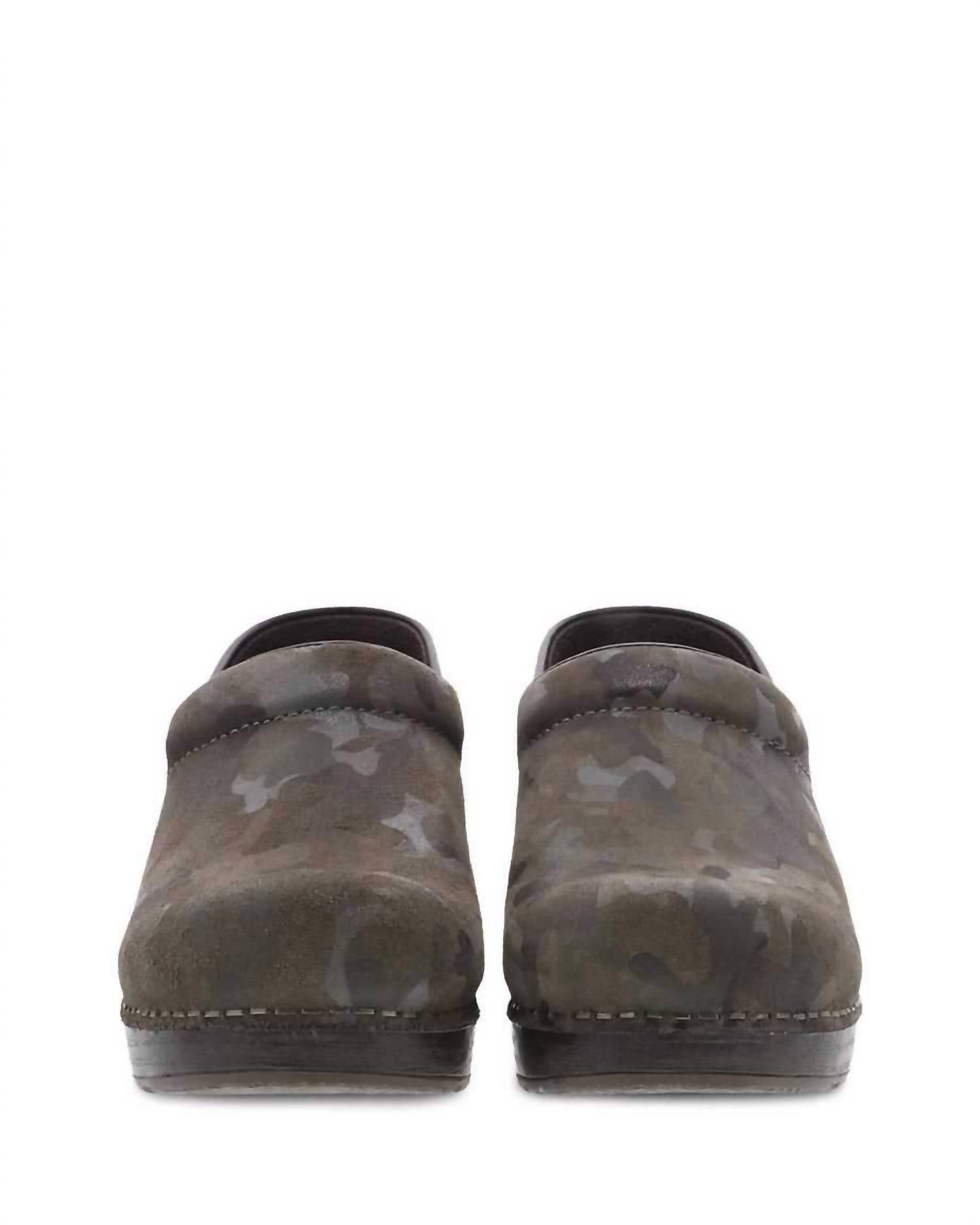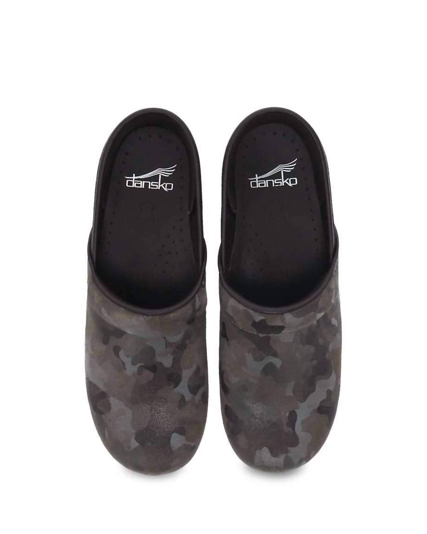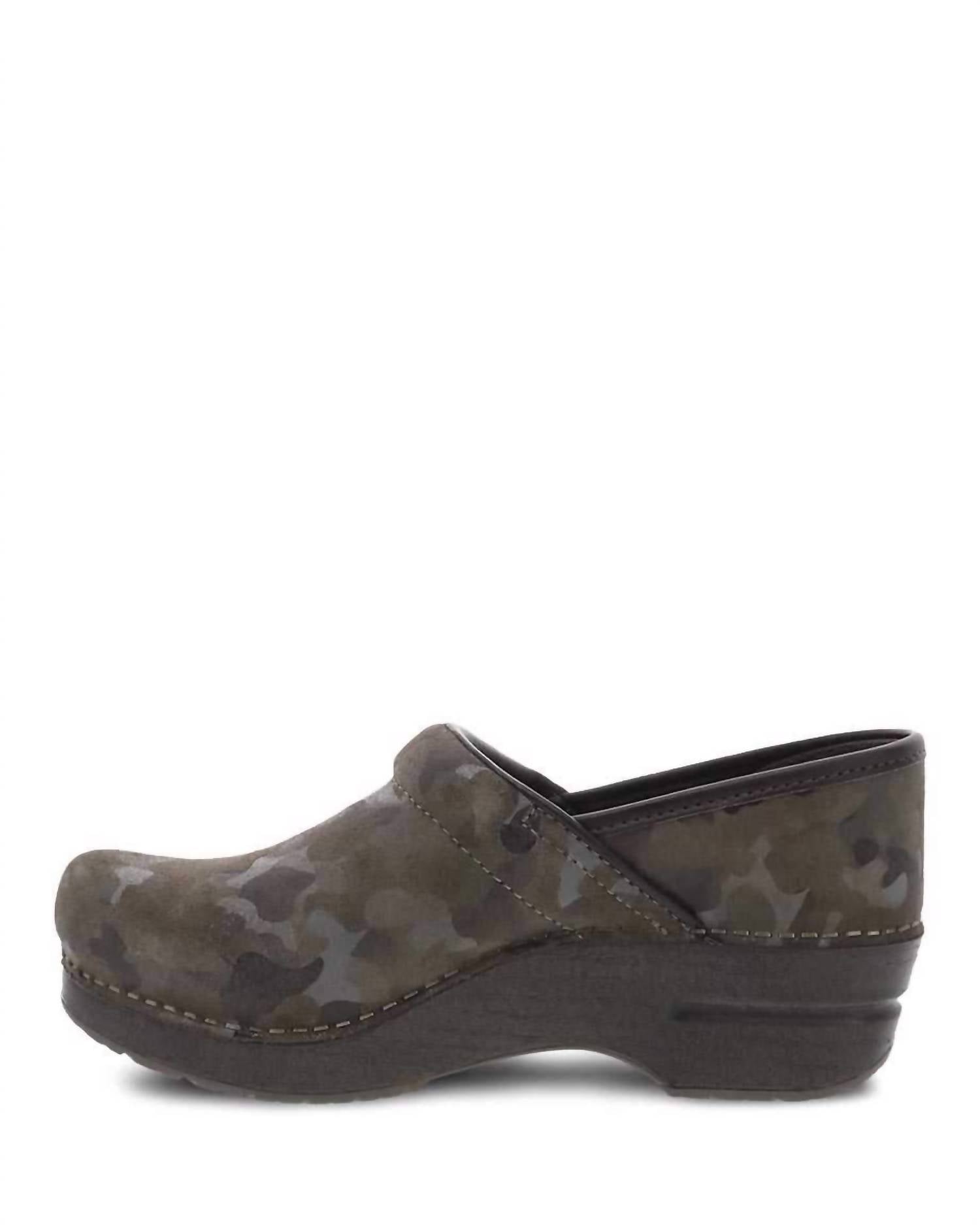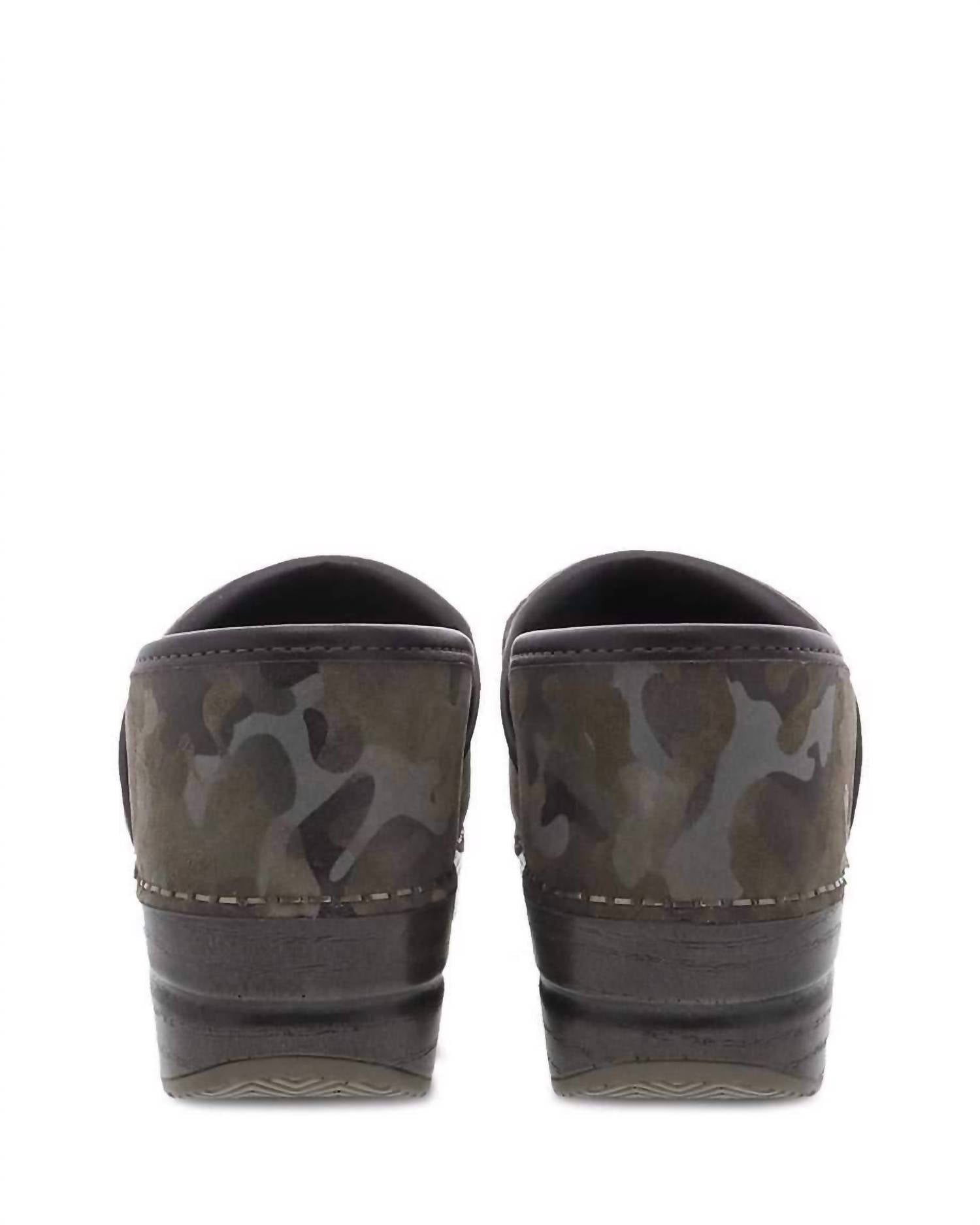 Stylish, comfy, and versatile. We can't find anything wrong with these. Step into effortless style with the Dansko Women's Professional Clog, designed for comfort and stability. Crafted from premium leather uppers, these clogs feature a roomy reinforced toe box and a padded instep collar for all-day walking ease. The PU outsole with a rocker bottom enhances shock absorption and propels the foot forward, while the protective TPU heel counter offers free heel movement. With a 2-inch heel height and a minimalist camo design, they're perfect for any holiday party this fall.