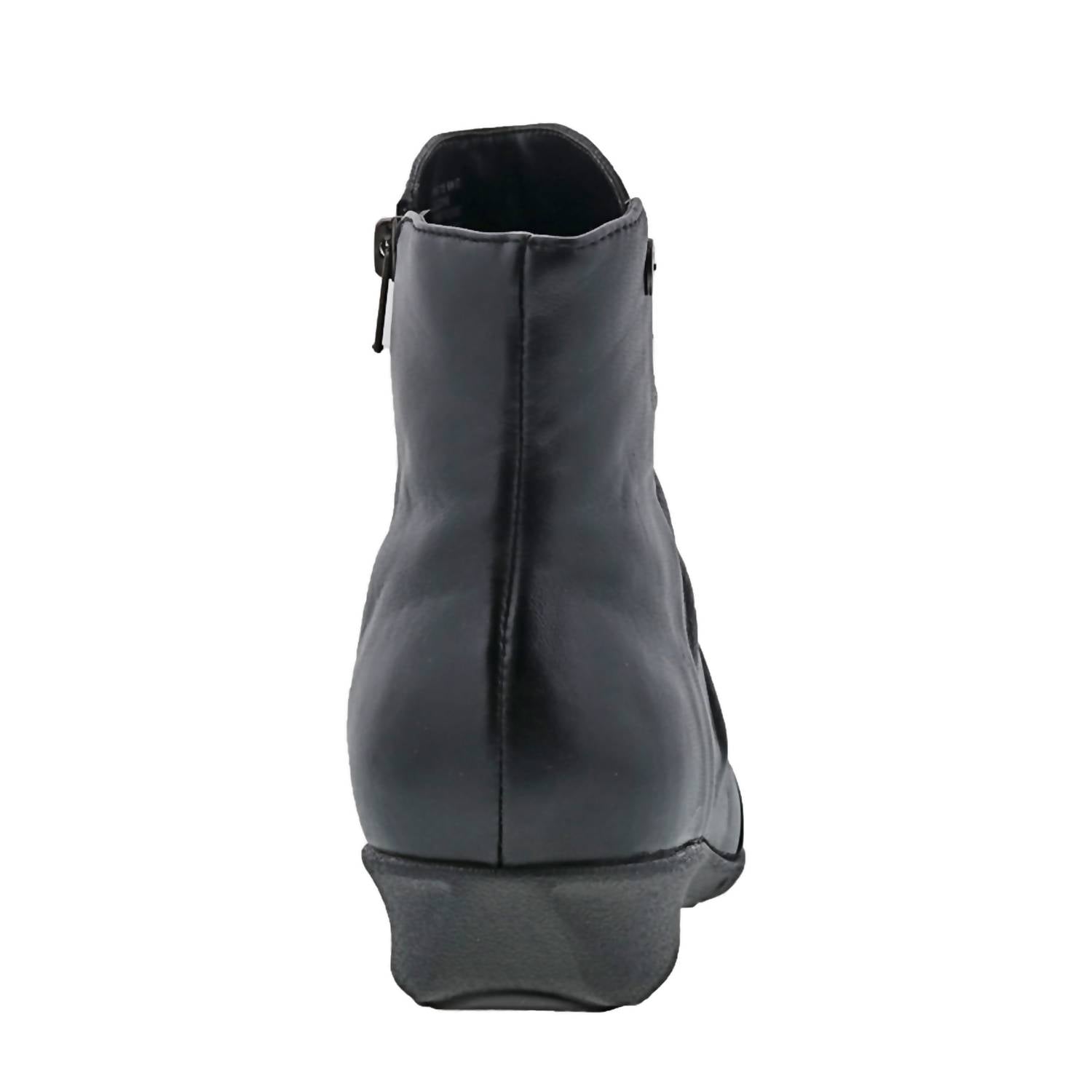 Say hello to the perfect, most versatile boot. The ankle height makes this style easily transition from day to night. Wear them with your favorite skinny jeans and tee for a more laid back look, or pair them with your favorite mini dress and jacket for a night out on the town. Step into comfort and style with the Women's Cologne Ruchie Boots by Drew Shoes, crafted from premium leather in timeless black. These ankle boots feature a round toe and stylish leather ruching, along with a convenient side zipper closure. Designed for adult women, the boots offer a low 1.25-inch wedge heel and narrow fit, with a 5.0" shaft height for the perfect balance of fashion and function. Built with a flexible polyurethane outsole and Drilex lining, these boots are ideal for accommodating prescribed orthotics, ensuring both comfort and durability.