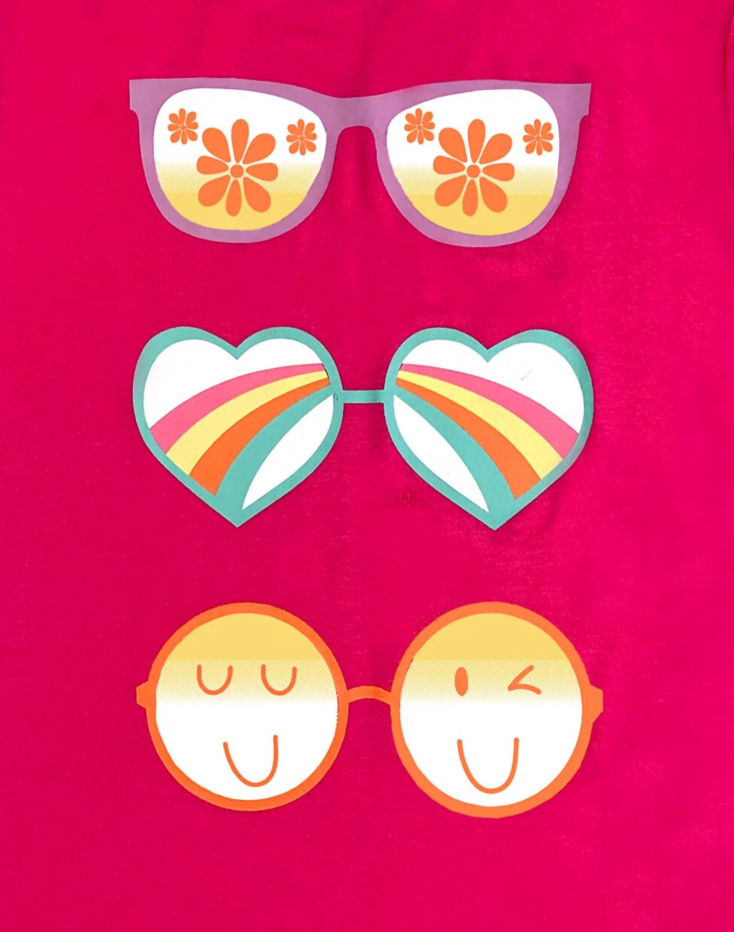 This short-sleeve tee is made from soft and comfortable Rayon, featuring a playful graphic pattern adorned with trendy sunglass emojis. Designed with adventurous kids in mind, it's machine washable and should be laid flat to dry.