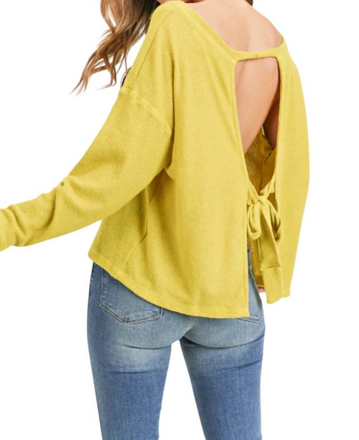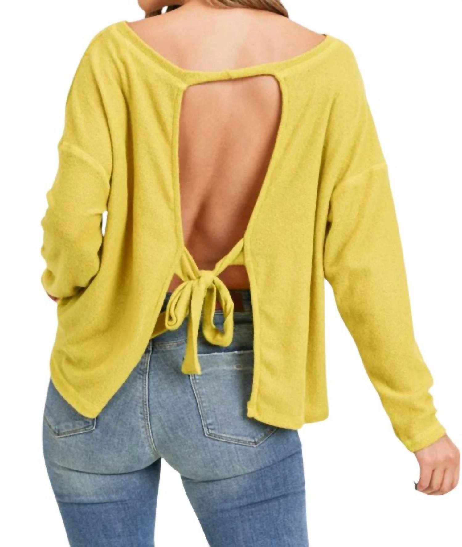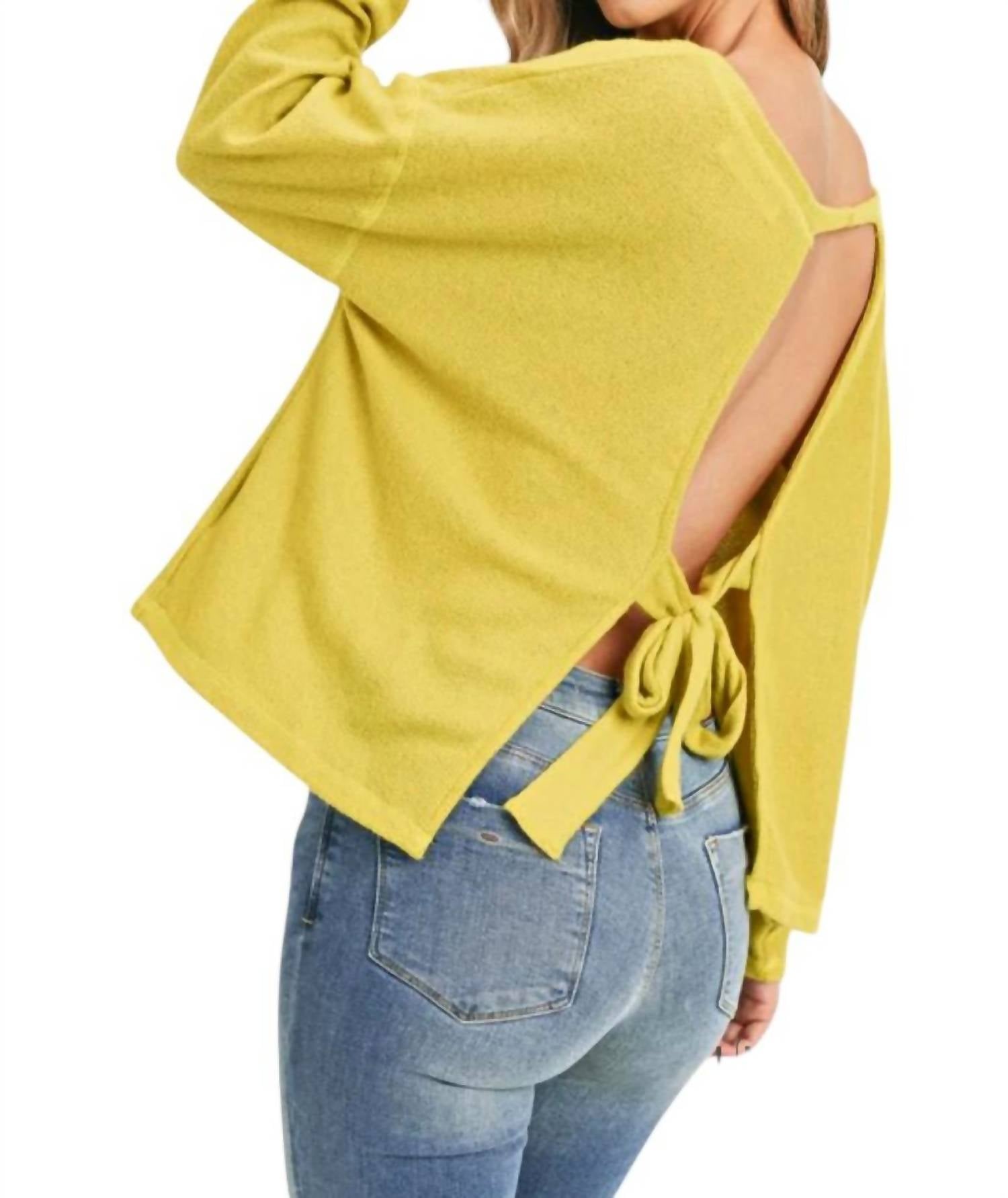 This Alexia Pullover Open-Back Sweater features a boatneck design and a tie closure at the back. Made from 62% polyester, 33% cotton, and 5% spandex, it is easy to care for with a cold wash, line drying, and low-heat ironing.