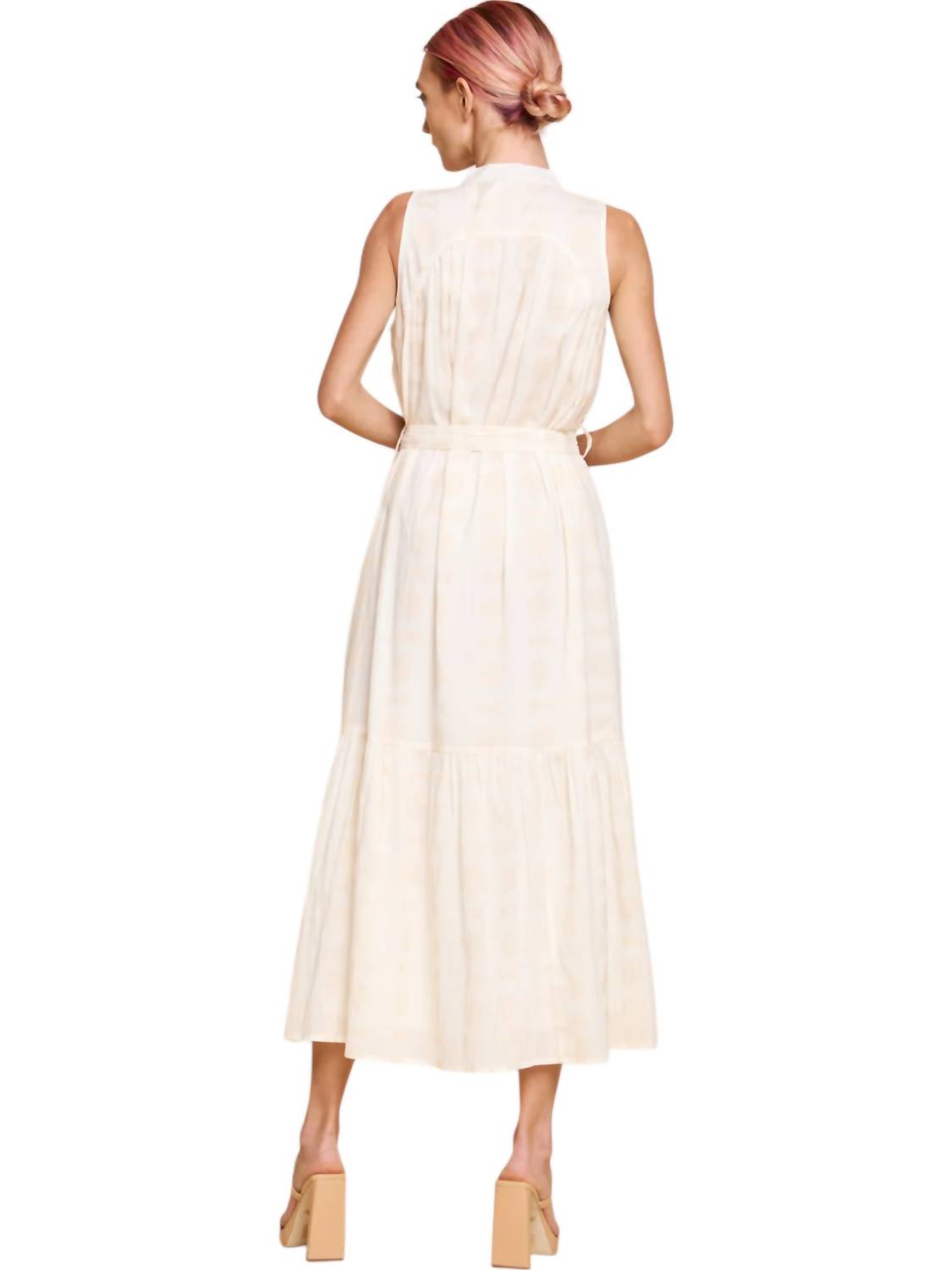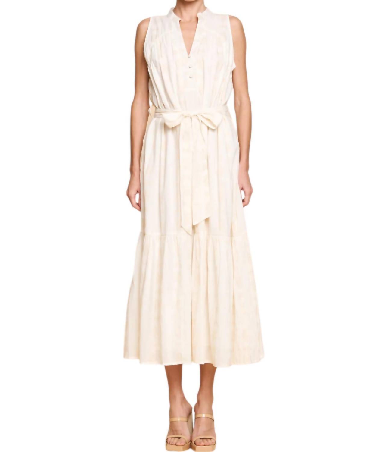 Discover the Dot JQD Midi Dress by CIEBON, a stunning choice in a solid white hue designed for the modern woman. Featuring a sleeveless silhouette, this kaftan-style dress offers elegance with a comfortable tie closure and a chic V-neckline. With its midi length, this dress is versatile for various occasions. Care for this beautiful piece by laying it flat to dry.