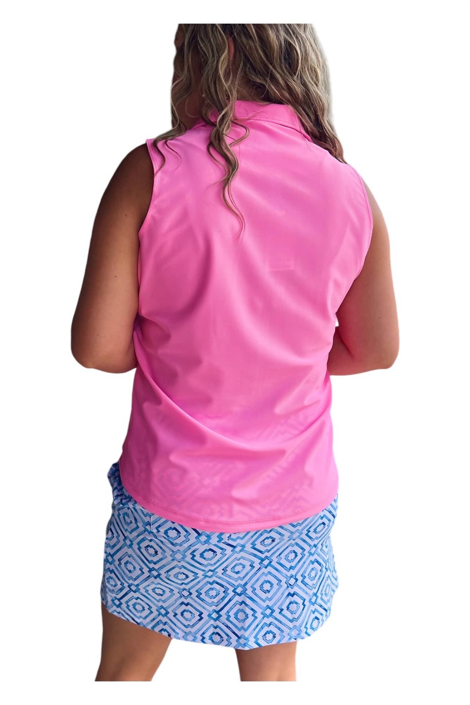 Sleeveless. Collared neckline. V-neckline. 100% Cotton. Machine wash cold.