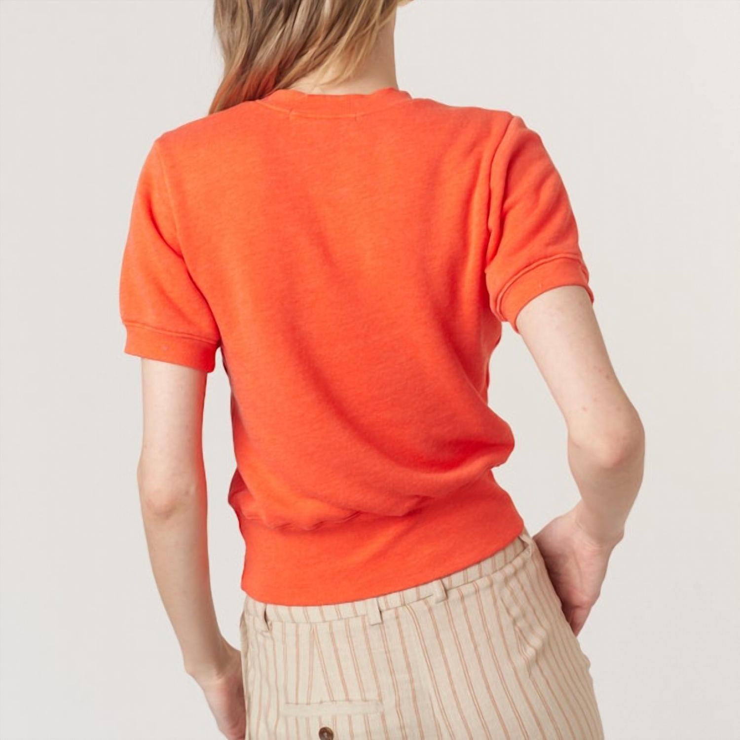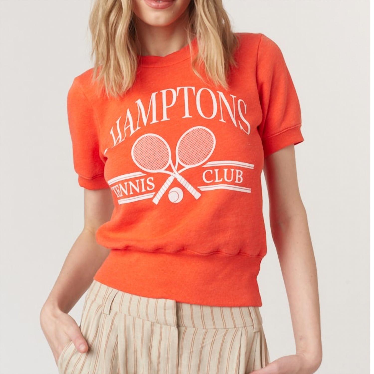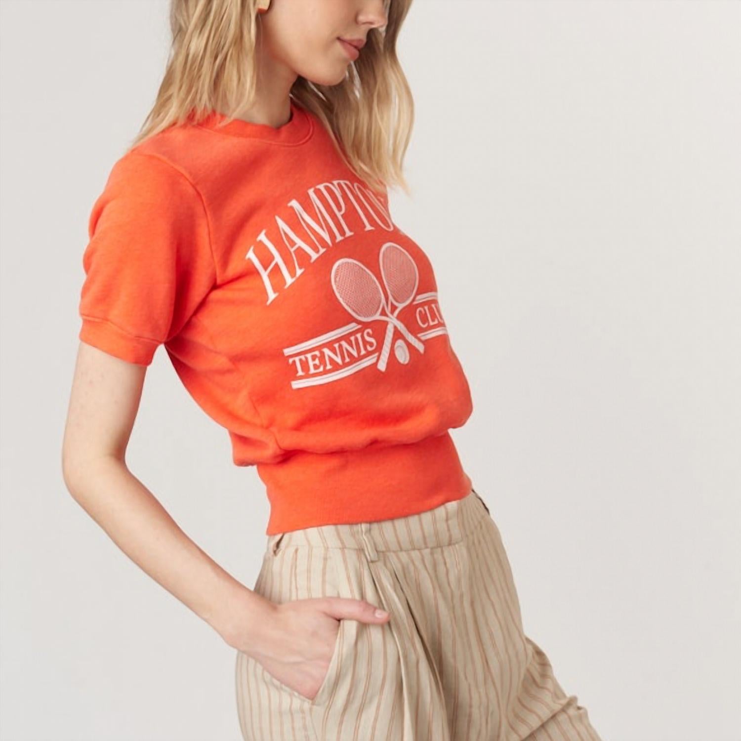 The short sleeve tee you'll want in every color. Elevate your casual ensemble with the Hamptons Pullover Tee by PROJECT SOCIAL T, designed for women who value both comfort and style. This short sleeve top is crafted from 100% cotton fleece, offering a cozy feel with its puff sleeves and banded waist. The fiesta red color and graphic white text make it an eye-catching addition to your wardrobe, ideal for game day or any summer outing. Designed with a crewneck and pull on closure, this athleisure piece is perfect when paired with jeans or joggers for a relaxed yet chic look.