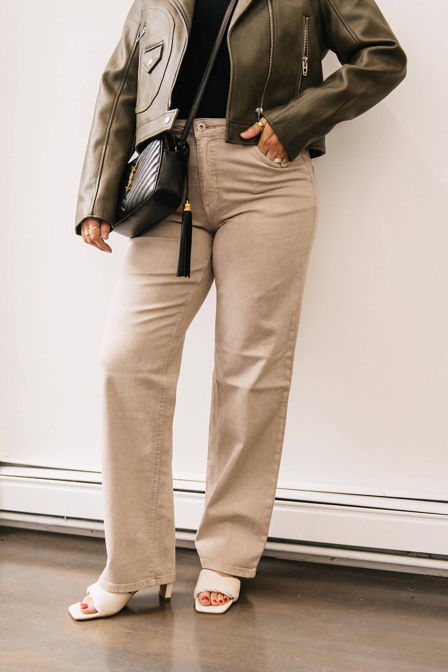 A straightleg pant that workes season after season. Dress these up with your favorite blouse or keep it casual with your go-to tee. Embrace timeless style with the Straight Leg Trouser Jean by ICHI, a staple addition to any wardrobe. These versatile jeans in a unique doeskin color feature an 11" rise and 32" inseam for a comfortable fit. Made from a durable cotton blend of 98% cotton and 2% elastane, they promise all-day comfort with a consistent silhouette. The design is complete with a button and zip fly closure, ensuring effortless wear.