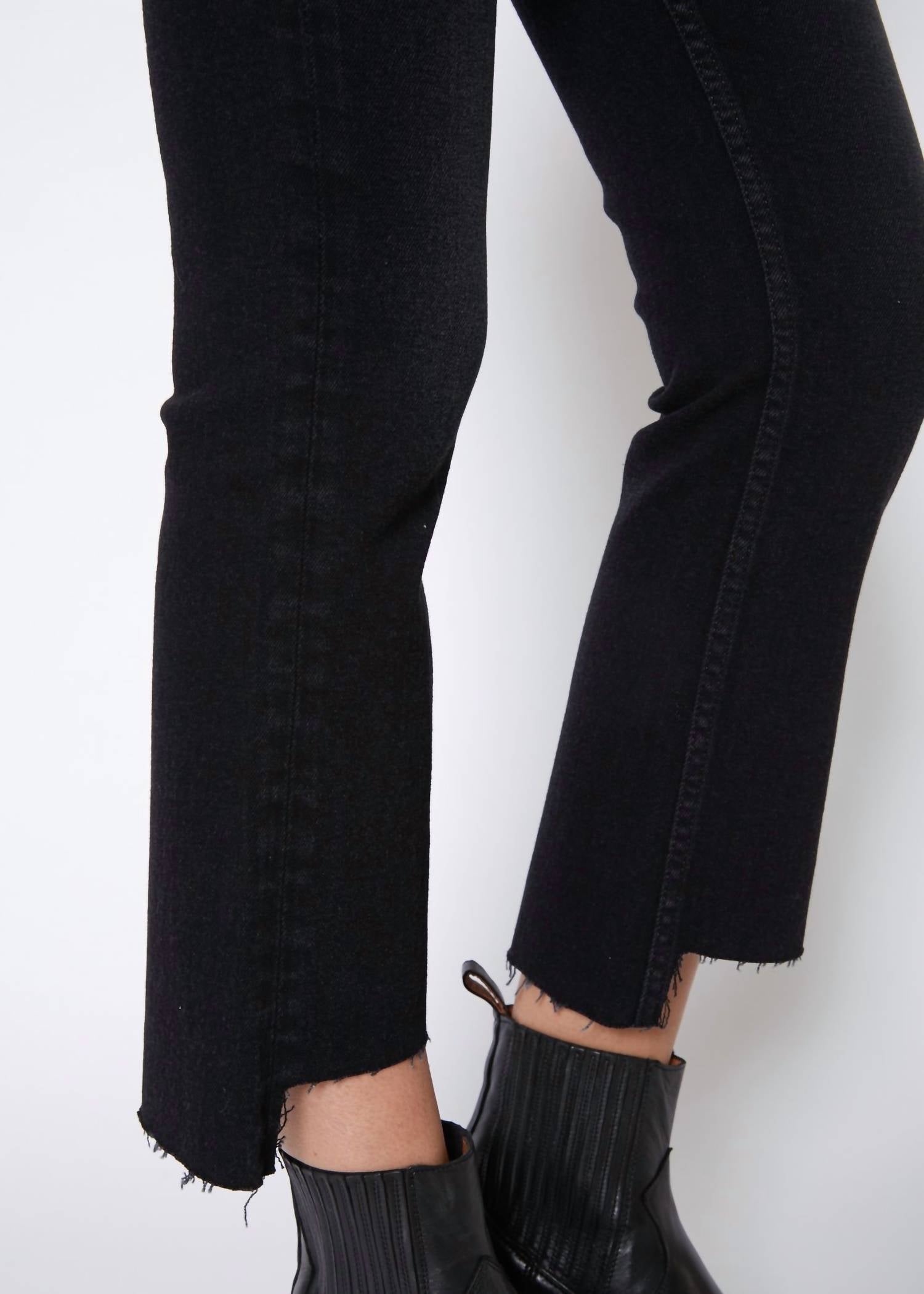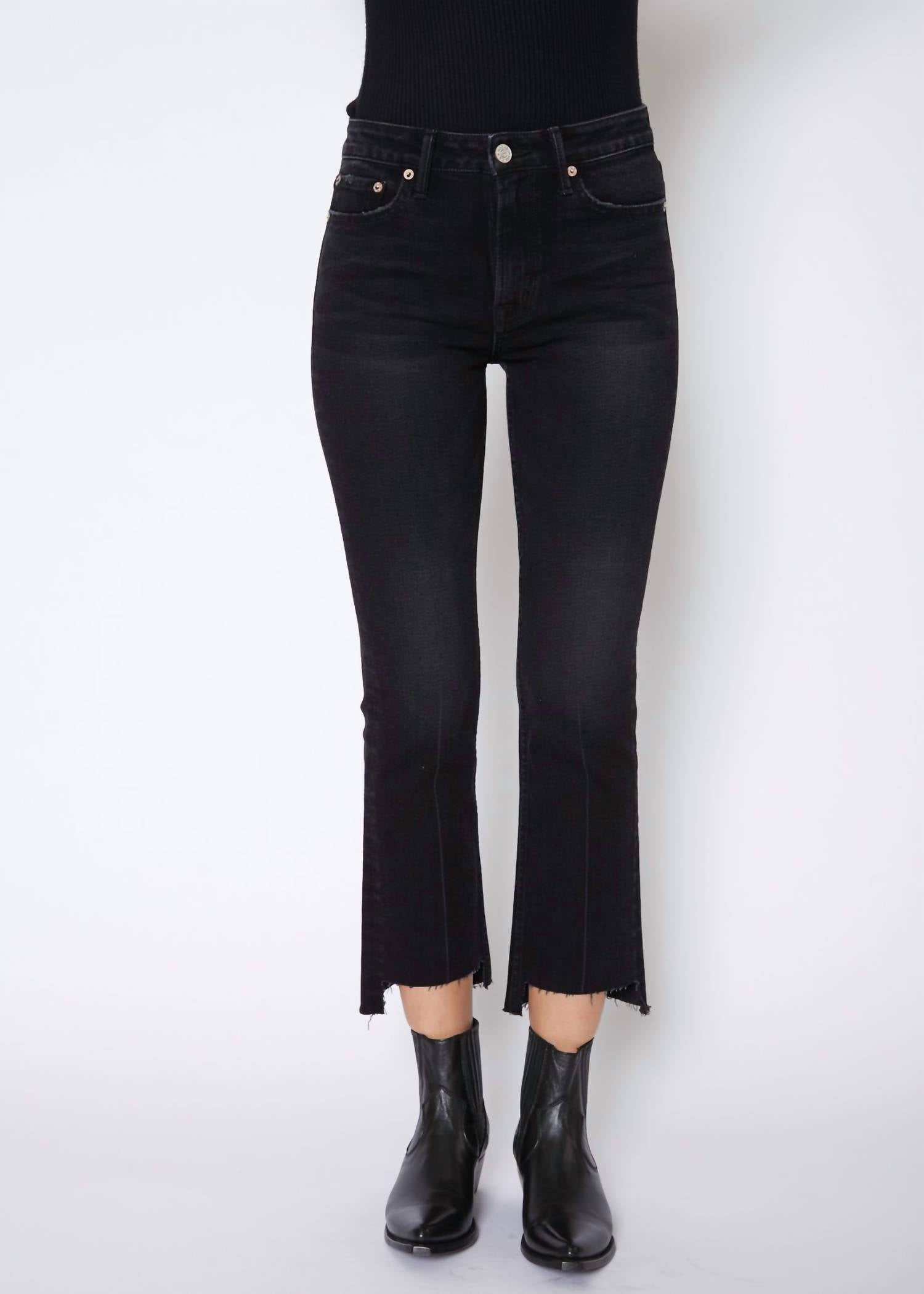 Introducing the Women's Farrah Kick Flare Jeans by NOEND, designed for a sleek and modern style in timeless black. These solid-patterned jeans boast a slim fit with a flattering flared leg and practical pockets. Featuring a mid-rise waist and a classic button closure, they're perfect for a chic look. Please follow care instructions as labeled on the garment.