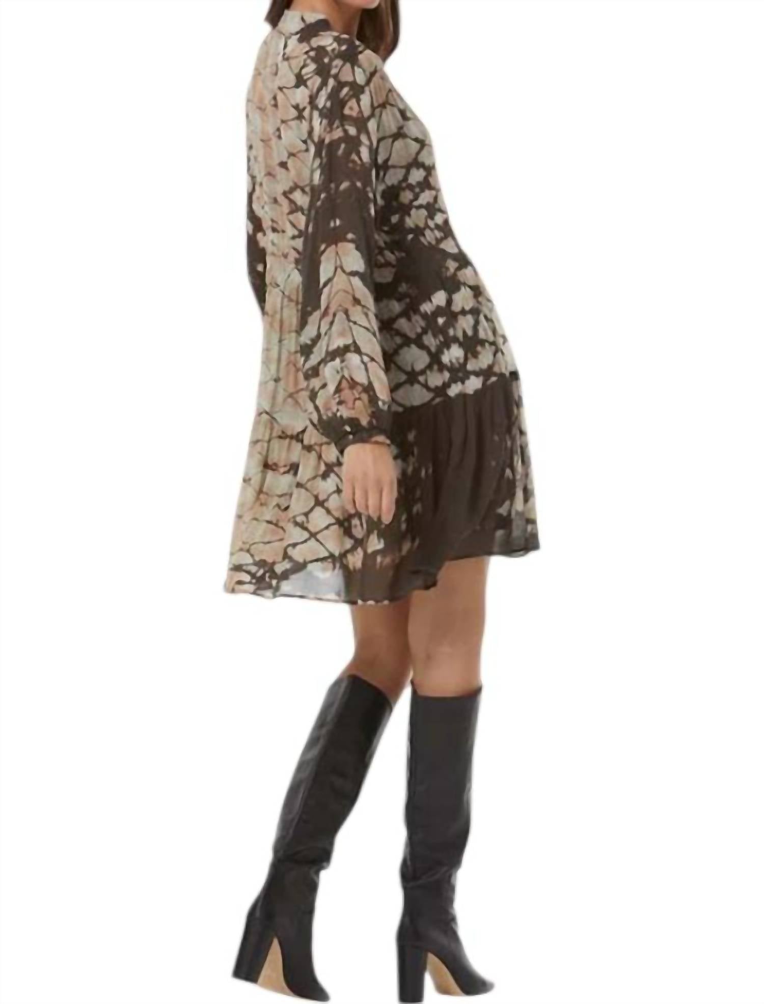 This babydoll style dress features slight voluminous long sleeves, a mini length, and a tiered silhouette. Made from lightweight chiffon drape fabrication, it is composed of 100% rayon. Hand wash cold.