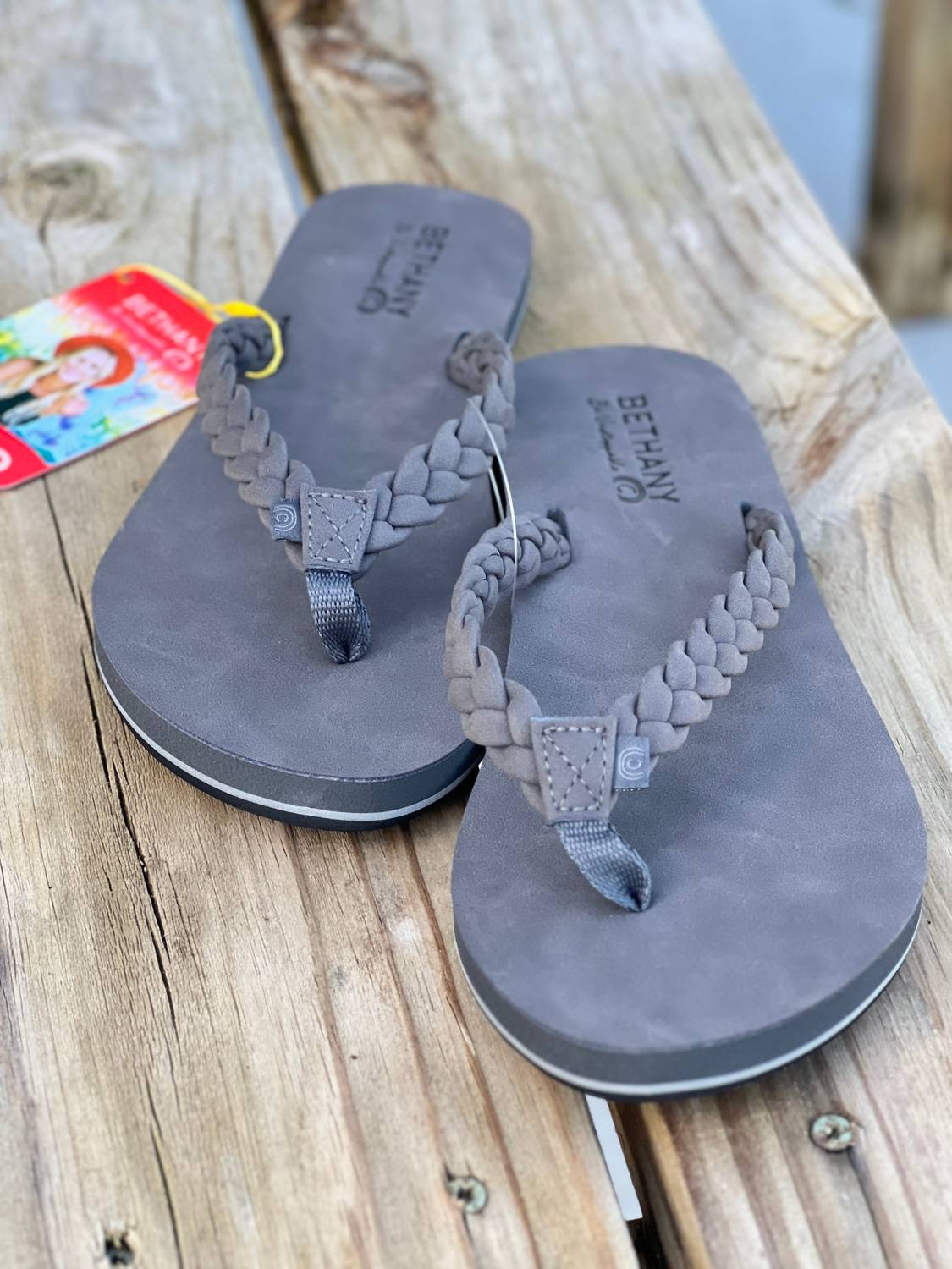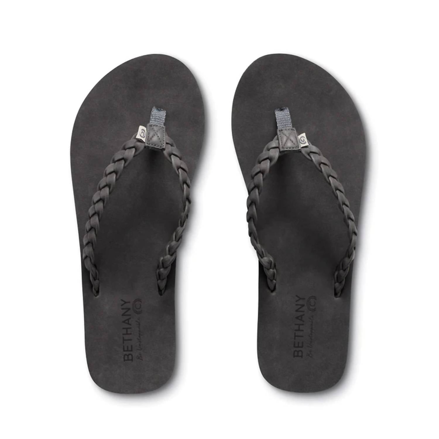 Pair these with a cozy robe and we call this loungewear luxe. Step into summer with the Women's Bethany Braided Pacifica Flip-flops by Cobian, crafted from premium leather in an elegant charcoal shade. These slippers feature braided straps that add texture and style, perfect for any Beach Day or athleisure outfit. With a flat heel and round toe shape, these sandals boast a low heel height of 1 1/4"-2", ensuring comfort and support. Designed for women, this versatile summer essential is ideal for any casual occasion.