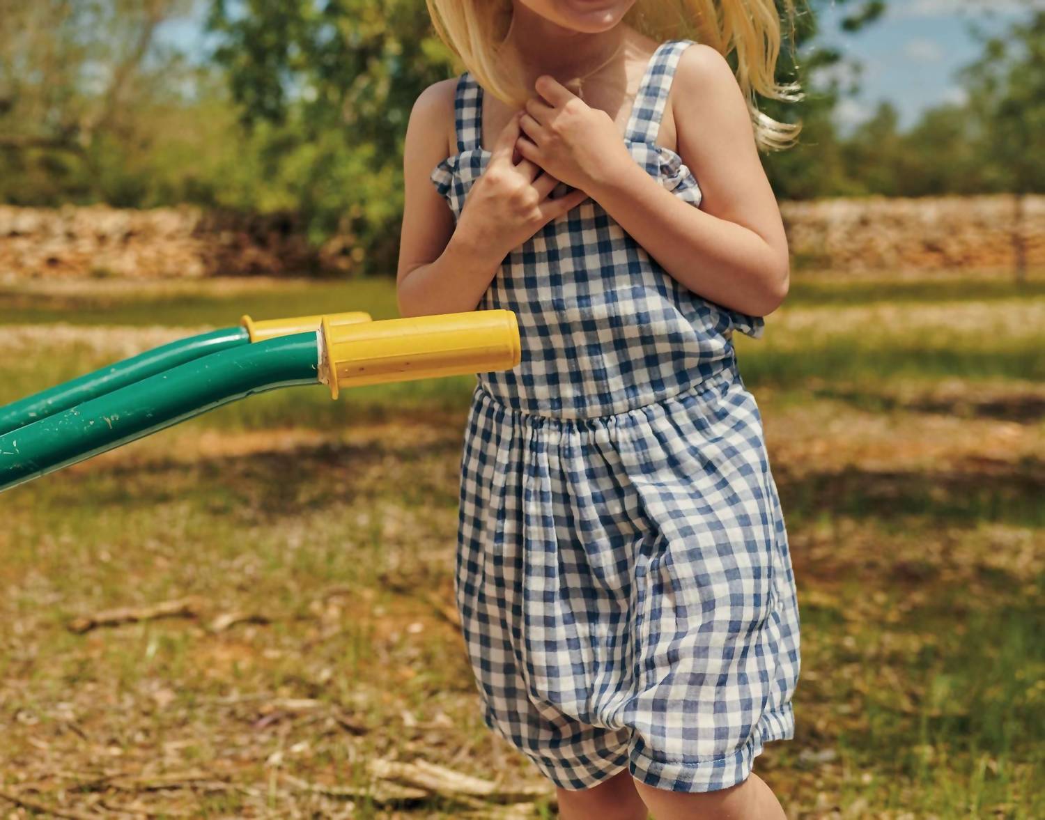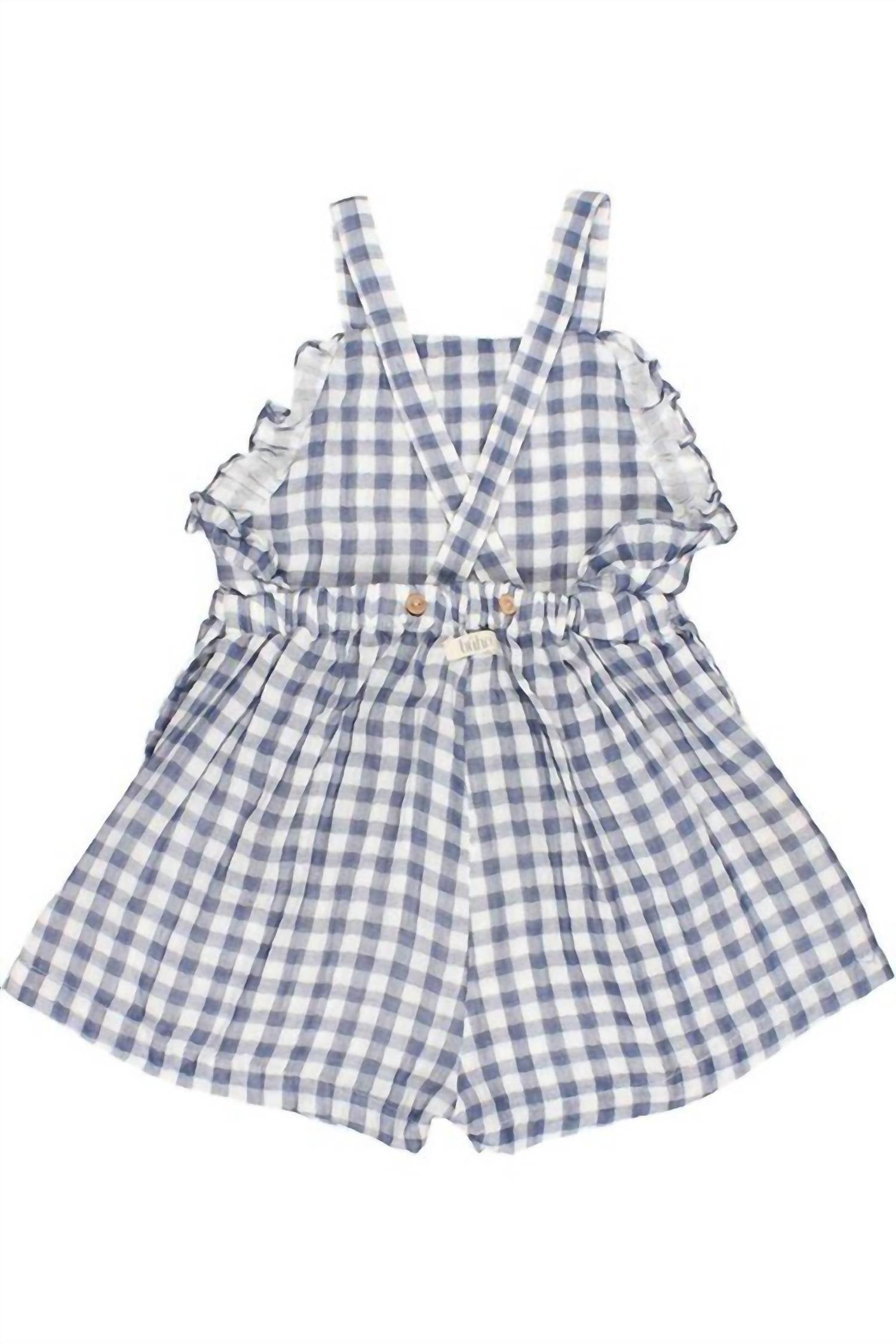 The Búho Gingham Jumpsuit in Blue Stone is a charming piece designed for girls, featuring a relaxed fit that's perfect for playful days. Crafted from 98% Cotton and 2% Polyester, this jumpsuit offers a soft touch with adjustable straps and ruffle details for added flair. Made in Morocco, it boasts an elastic band at the back for a comfortable fit. Ideal for sizes 3, 4, 6, and 8, Búho recommends sizing up if in between sizes.