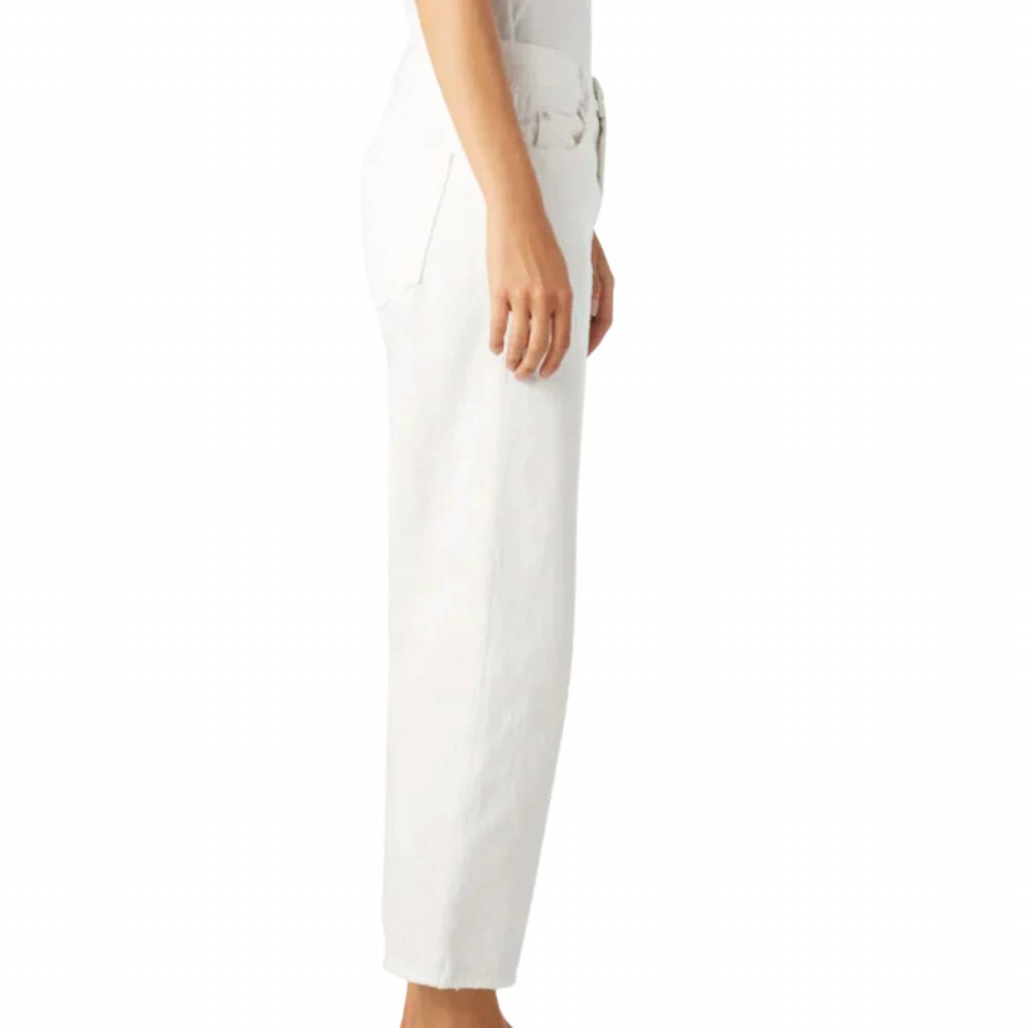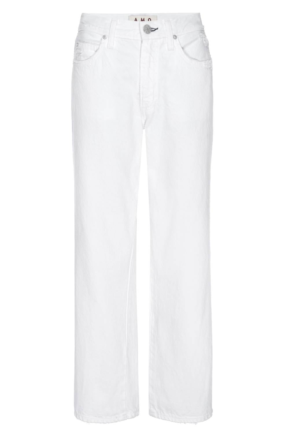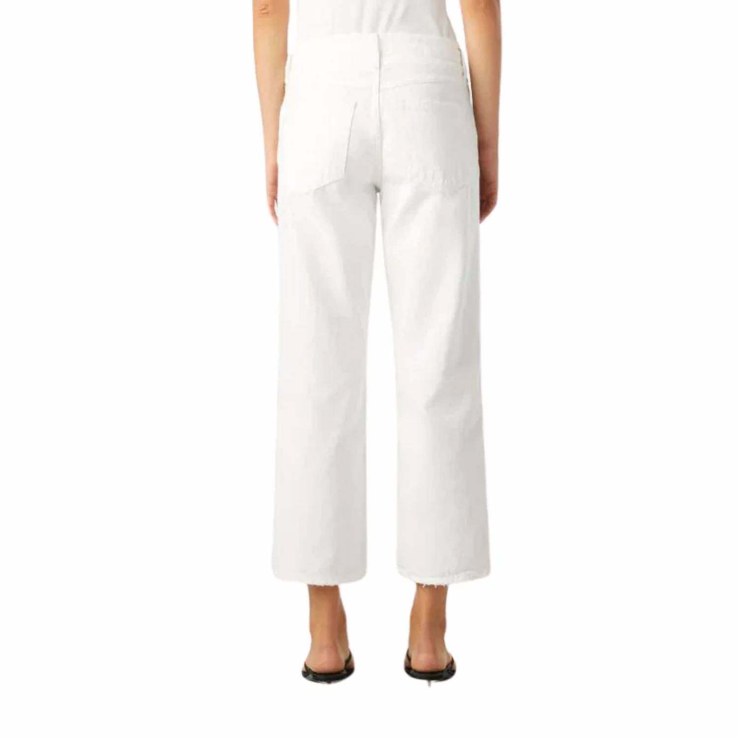 These must-have jeans are fit to perfection. Ideal choice for a relaxed yet chic look in Alabaster. Mid-rise, wide straight-leg jeans feature a cropped length with thoughtful distressing and a button closure. Crafted in Los Angeles from 100% Cotton. Designed to sit comfortably low on the hips with a 26.5" inseam and 10.75" front rise. Perfect for travel or minimalist fall fashion. Come with pockets. Easy to maintain with machine wash and tumble dry care instructions.
