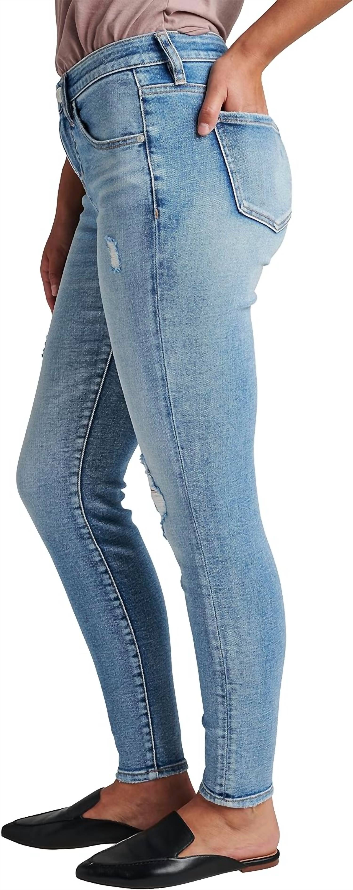 Skinny jeans with a distressed medium indigo wash. Best Kept Secret technology that smooths, lifts and supports. 9.75" mid rise. Power stretch denim that molds to your body and features great shape retention. 10.5" leg opening, 29" inseam. 94% Cotton 5% Polyester 1% Elastane.