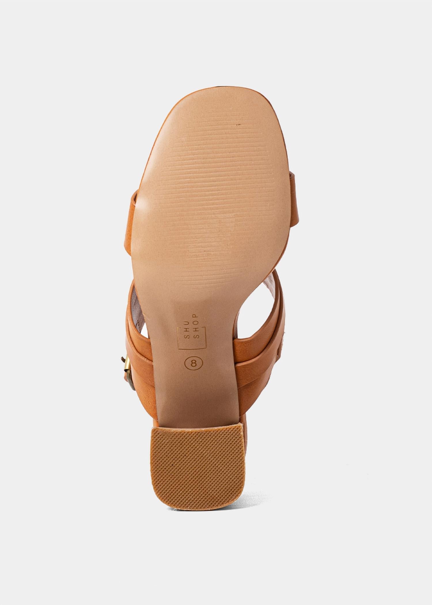The perfect height for day to night. Elevate your style with the Women's Hannah Block Heel by SHU SHOP, designed for a touch of minimalist chic with a standout attitude. These camel-toned sandals boast dual front soft faux leather straps adorned with oversized gold-tone ring hardware, exuding a bold yet sophisticated vibe. The adjustable slingback ankle strap with a gold buckle ensures a perfect fit, while the stacked block heel features a natural woodgrain texture for a modern finish. Experience ultimate comfort with the lightly padded footbed, making these heels an ideal choice for everything from tailored sets to elevated denim.