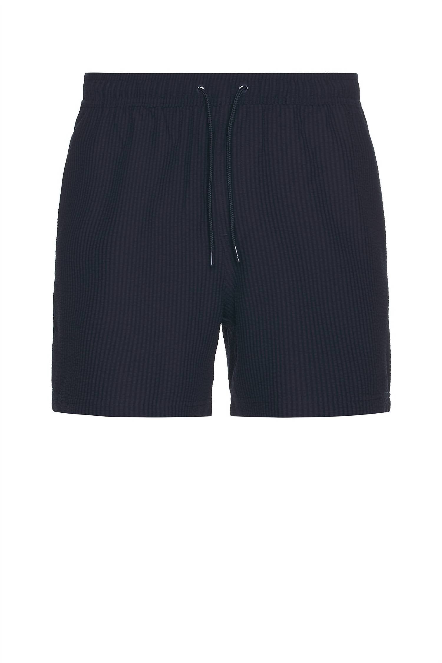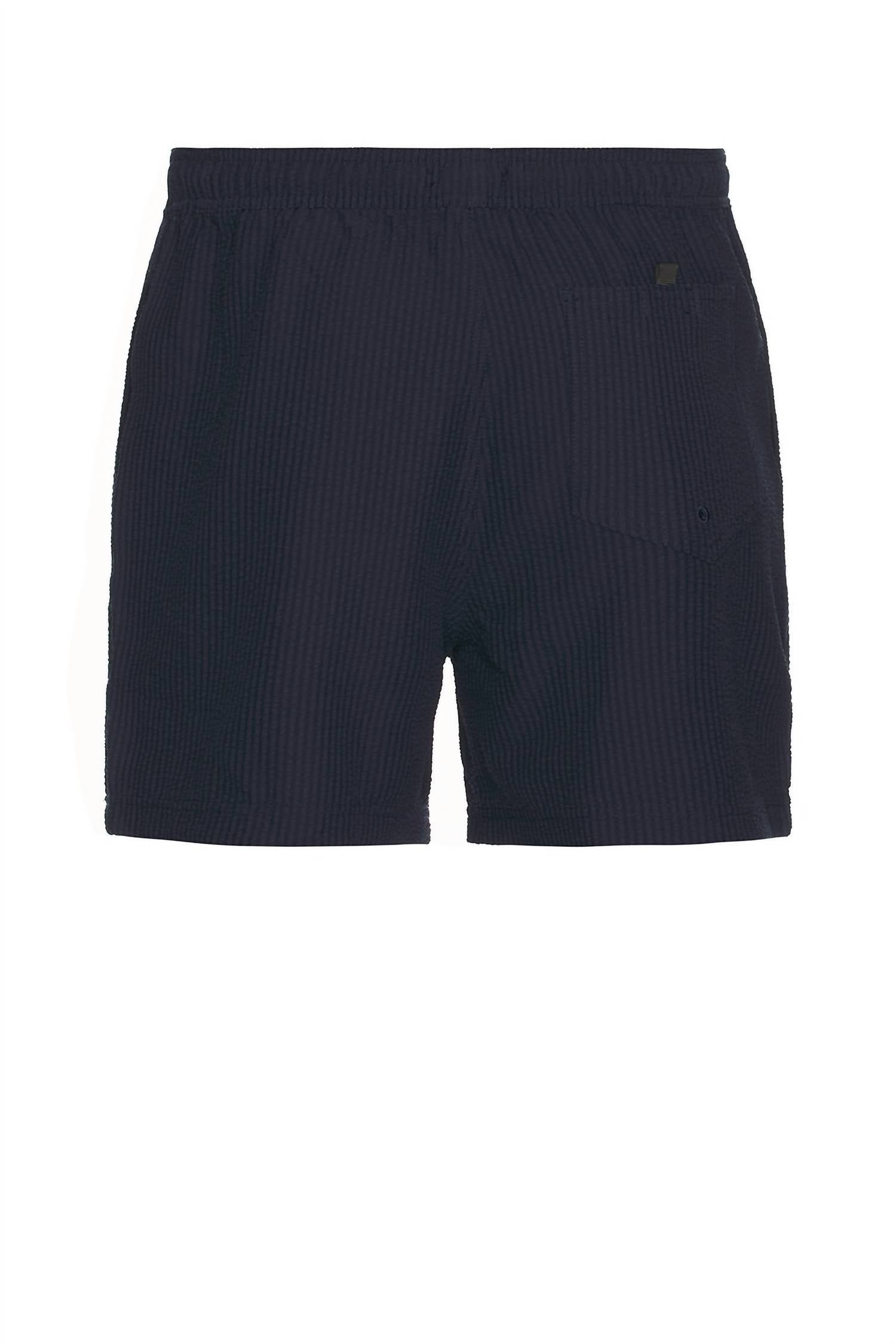 Upgrade your beach day attire with the La Brea Swim Trunks by Rails, offering a minimalist look in textured navy. Crafted from 98% polyester and 2% spandex seersucker fabric, these swim trunks are designed with a mid-rise fit and a drawstring waistband for adjustable comfort. They feature a practical inseam of 5", side pockets, and a single back pocket, providing both style and utility. Effortlessly maintain these swim trunks with machine wash care.