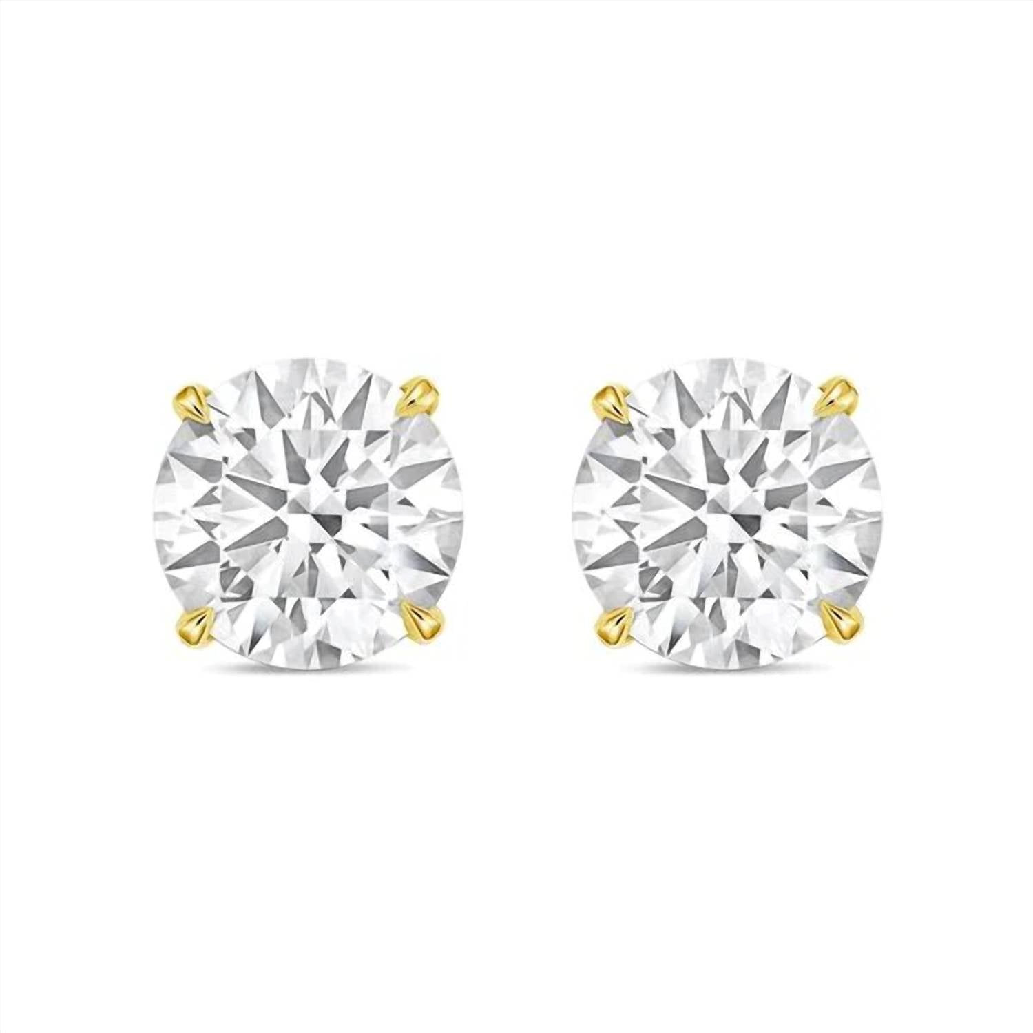 eye-catching earrings for every occasion. Elevate your elegance with the Diana M Jewels 3.00 Cts Round Lab Diamond Stud Earrings, crafted from luxurious 14K Yellow Gold. Each earring showcases a dazzling round brilliant lab-grown diamond set in a classic four-prong basket, offering DEF color, VS clarity, and an excellent cut. These fine earrings feature a secure post closure, perfect for the sophisticated wearer. Let these exquisite earrings be a testament to timeless beauty and exceptional craftsmanship. SKU: DSTLG300 BSF-YG