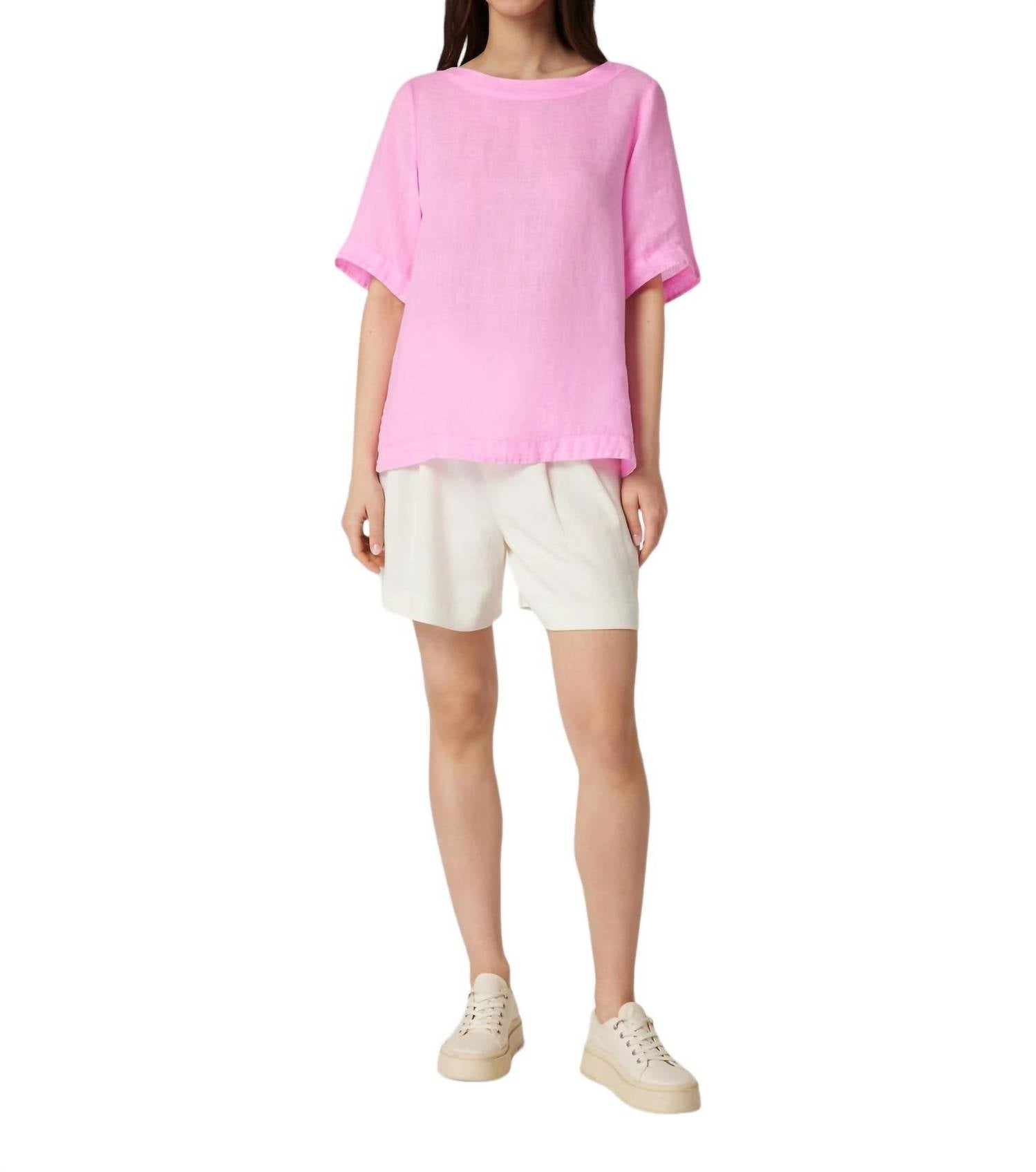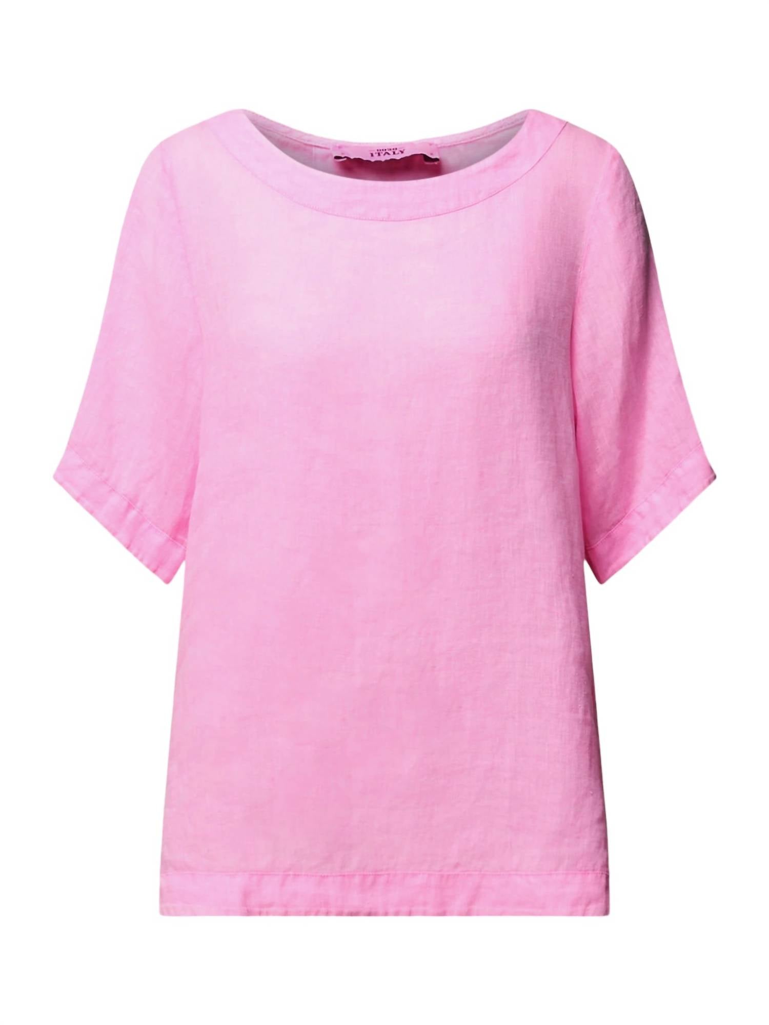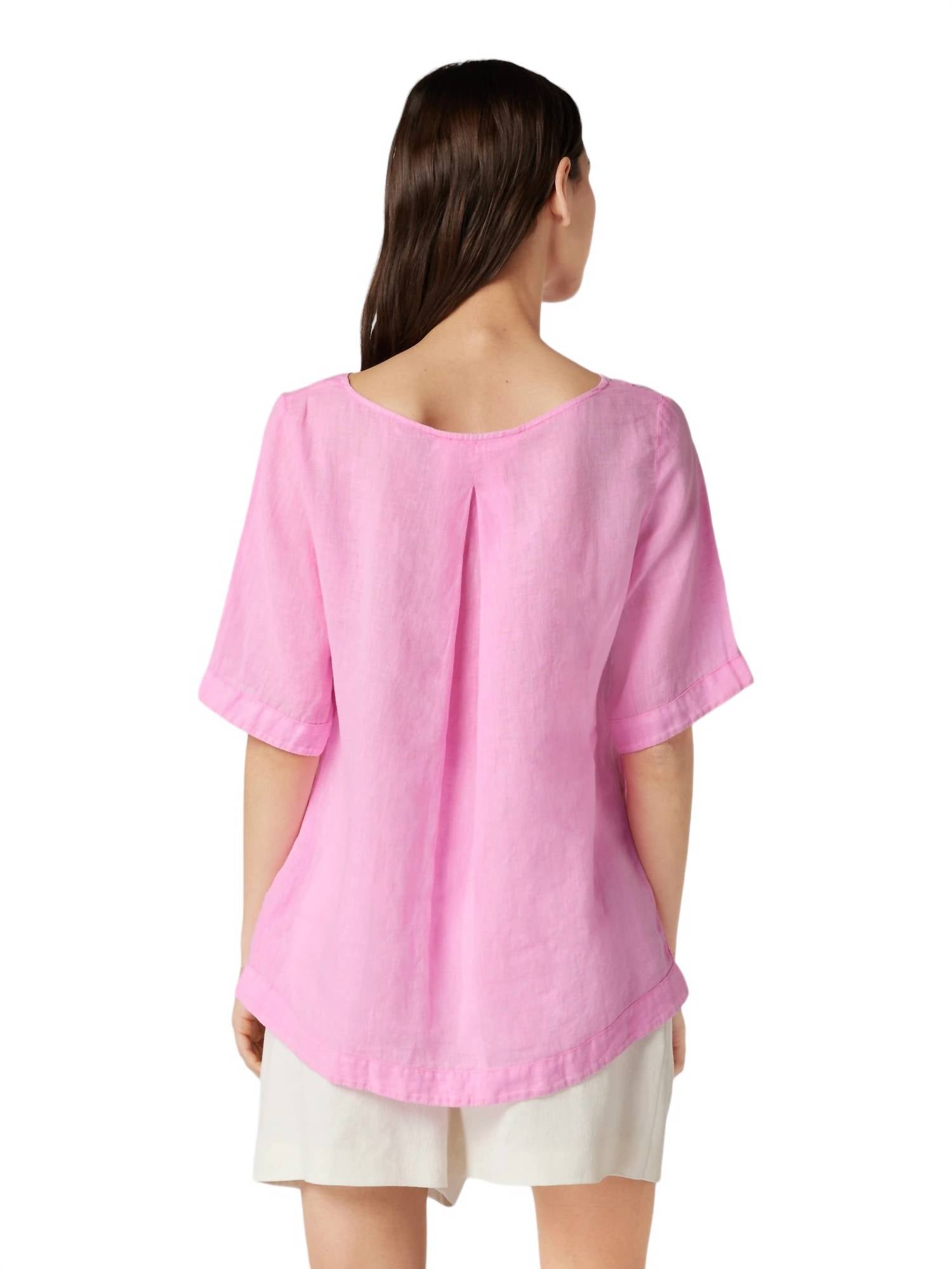 This blouse features a loose cut and solid color design with a round neck and half-arm sleeves. Made from 100% linen, it offers a lightweight and breathable feel. For size S, the back length is approximately 24.8 inches and the sleeve length is about 11.4 inches. It is best cared for with a gentle wash cycle at 40°C.