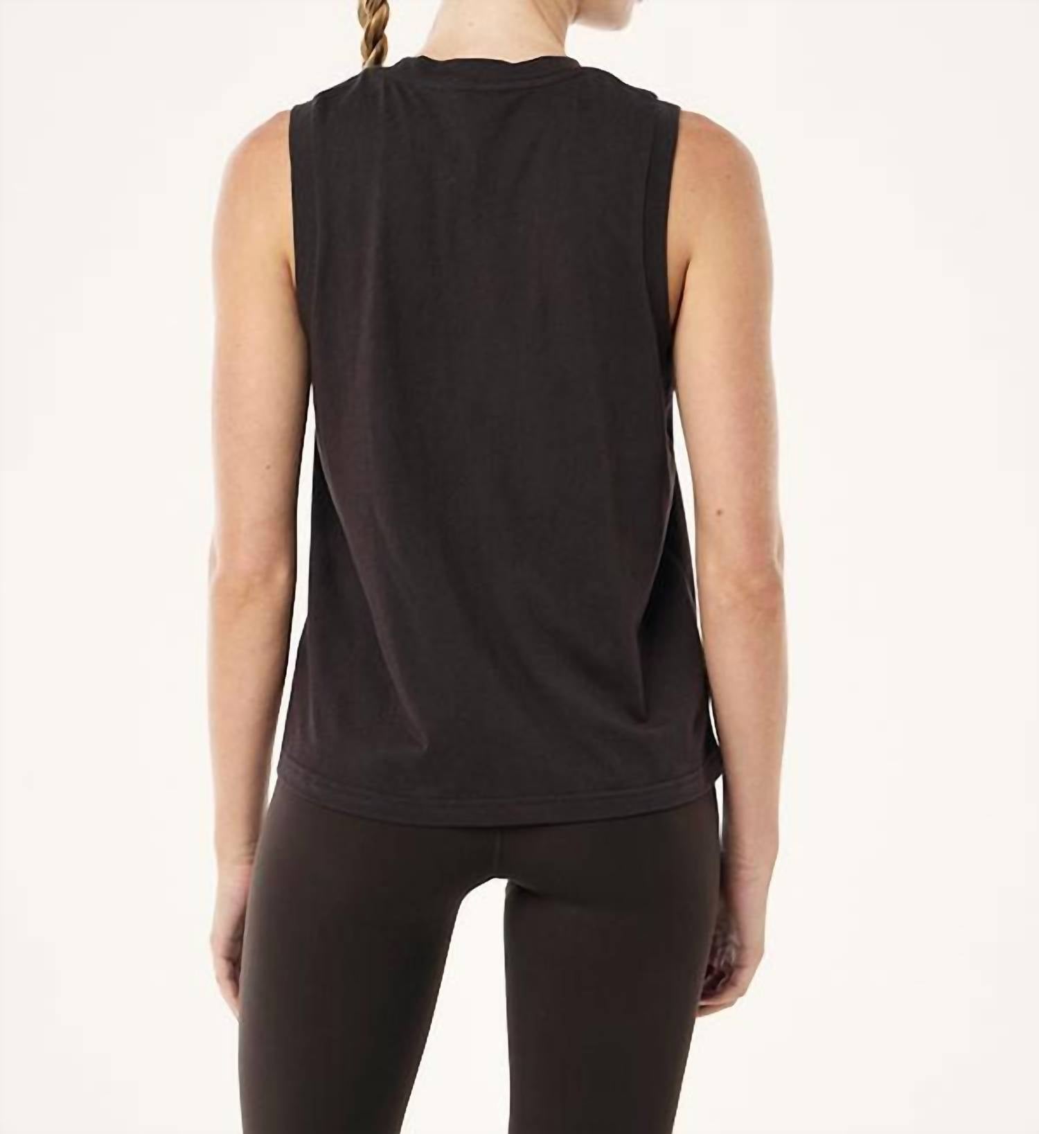 Fit, fabric and functionality. This tank top checks all the boxes. Introducing the Shuffle Tank by P.E. NATION, a chic addition to your athleisure collection in a sleek Licorice hue. This sleeveless tank is crafted from 100% organic cotton jersey, featuring a relaxed fit and a standout P.E Nation seasonal graphic at the center front. The pull-on design offers ease, while the machine wash care ensures practicality; be sure to line dry. Perfect for summer fitness or casual outings, it's styled with a crewneck fit.