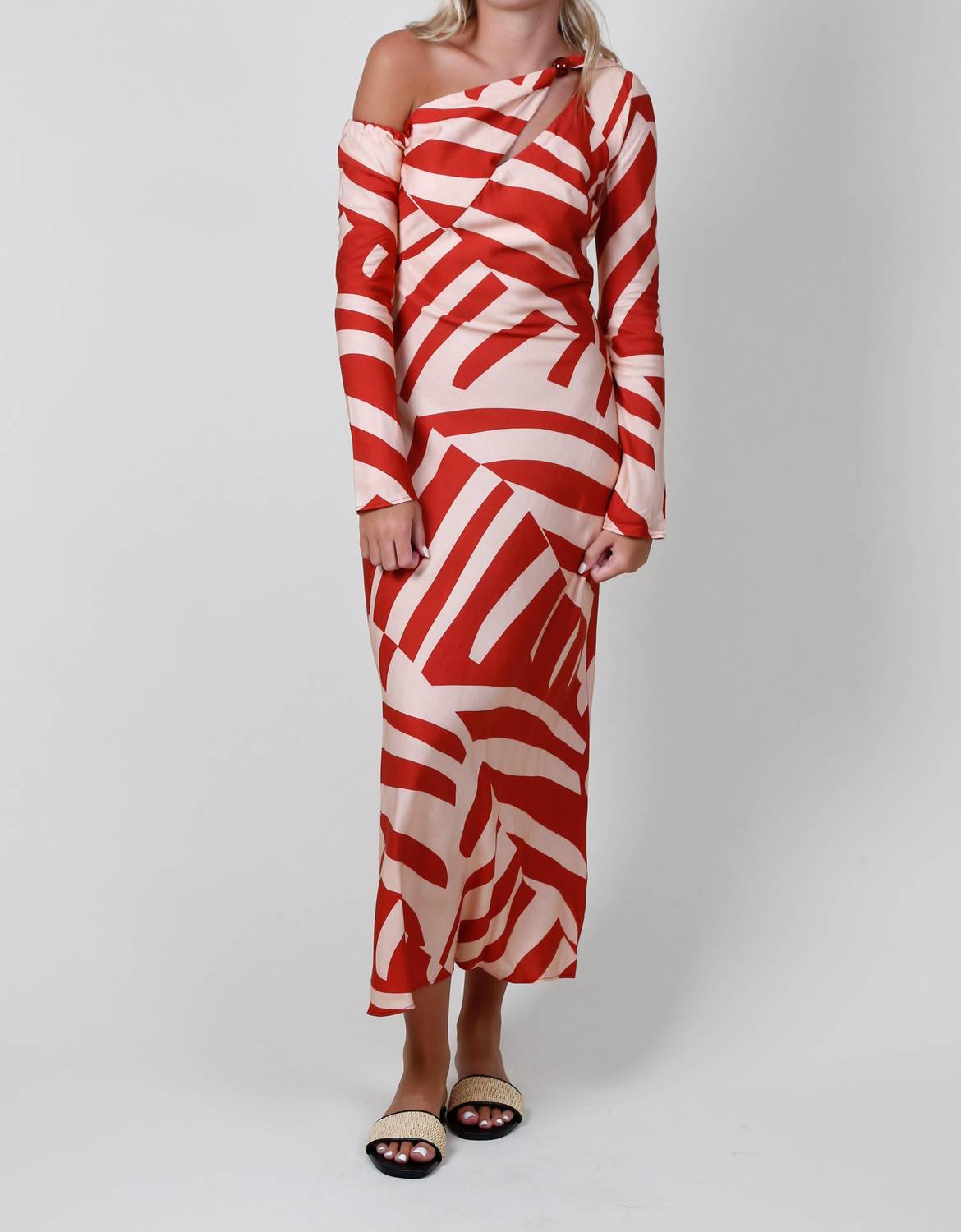 Just add slides or mules and you are good to go. Introducing the Tropico Midi Dress by MON RENN in the exclusive handcrafted Tropico Print, featuring a captivating off-the-shoulder silhouette. This women's dress showcases a shift silhouette with long, slightly belled sleeves and a skimming bias fit, adorned with signature stone detailing for a touch of elegance. Crafted from a meticulous blend of 55% Viscose, 19% Rayon, 18% Tencel, and 8% Linen, it provides a perfect fit with an elasticated over-arm opening and an invisible side zipper closure. Ideal for a spring dinner party, this dress embodies the trend of quiet luxury, perfect for your next special occasion.