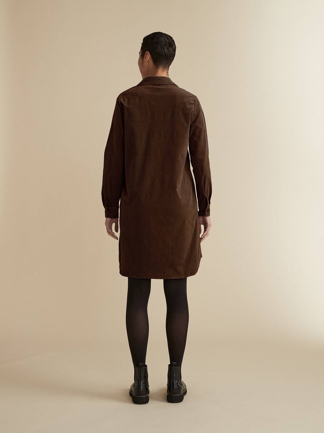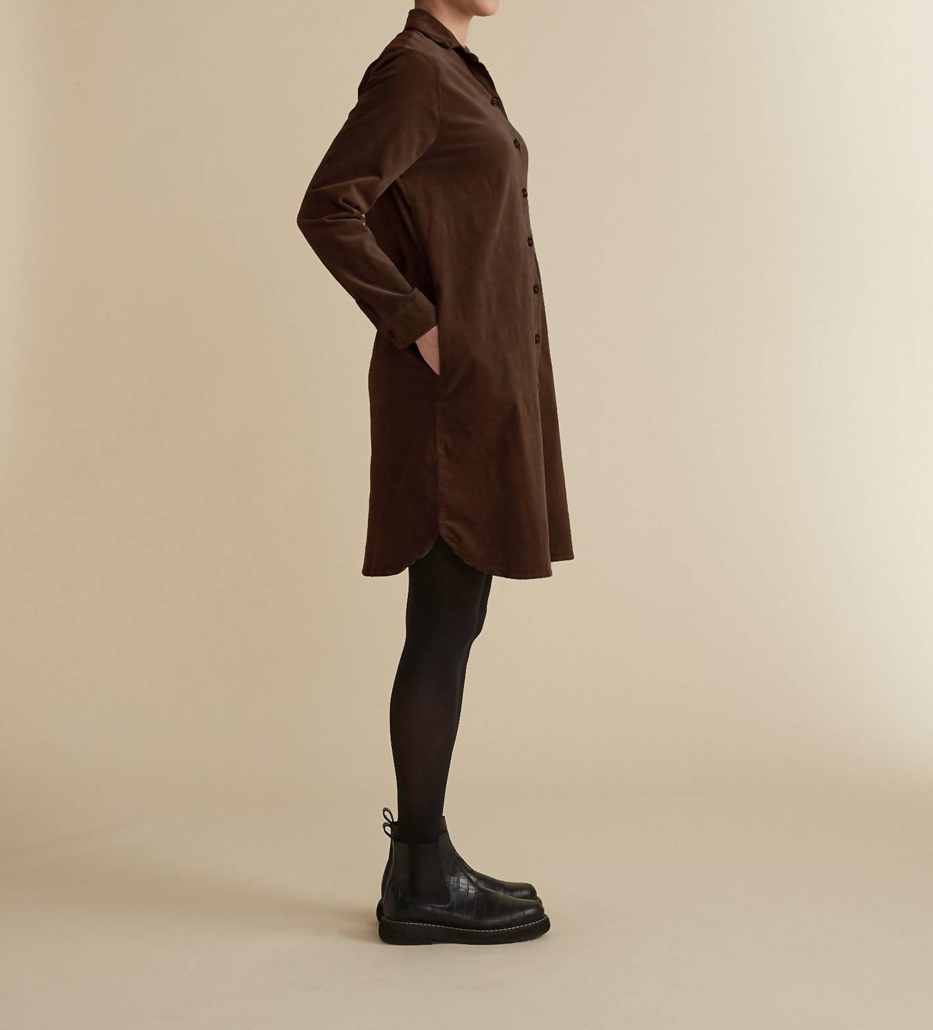 The kind of easy and flattering dress you'll be reaching for all season long. Experience the effortless style of the Mini Cord Shirt Dress by Cut Loose, crafted in a rich Mahogany hue. This women's dress, designed with long sleeves and a classic collar neckline, features a practical button closure and handy pockets. Made from a comfortable cotton blend of 97% cotton and 3% spandex, this solid-patterned mini dress promises both comfort and chic simplicity. Please refer to the garment's label for specific wash and dry instructions.