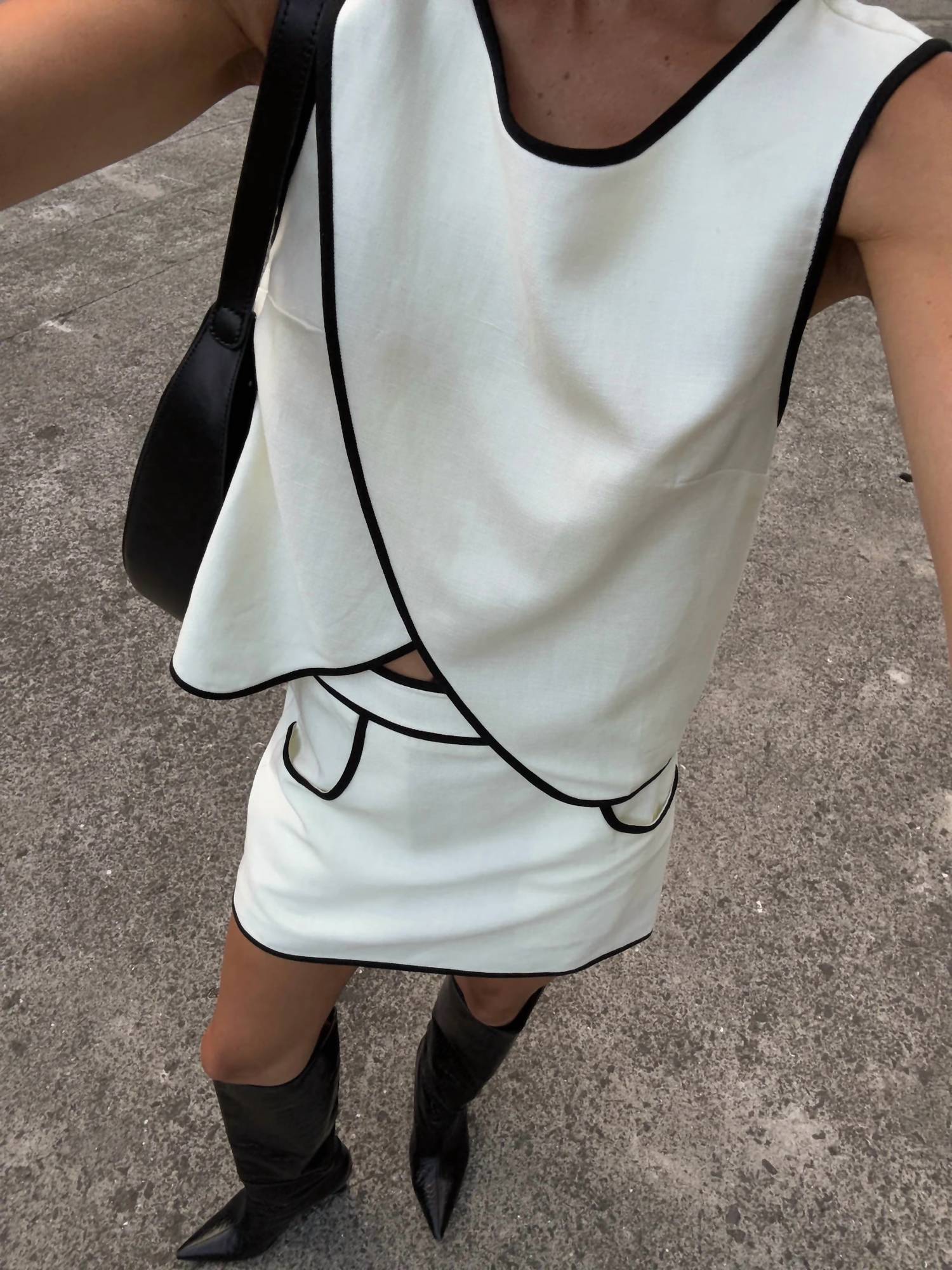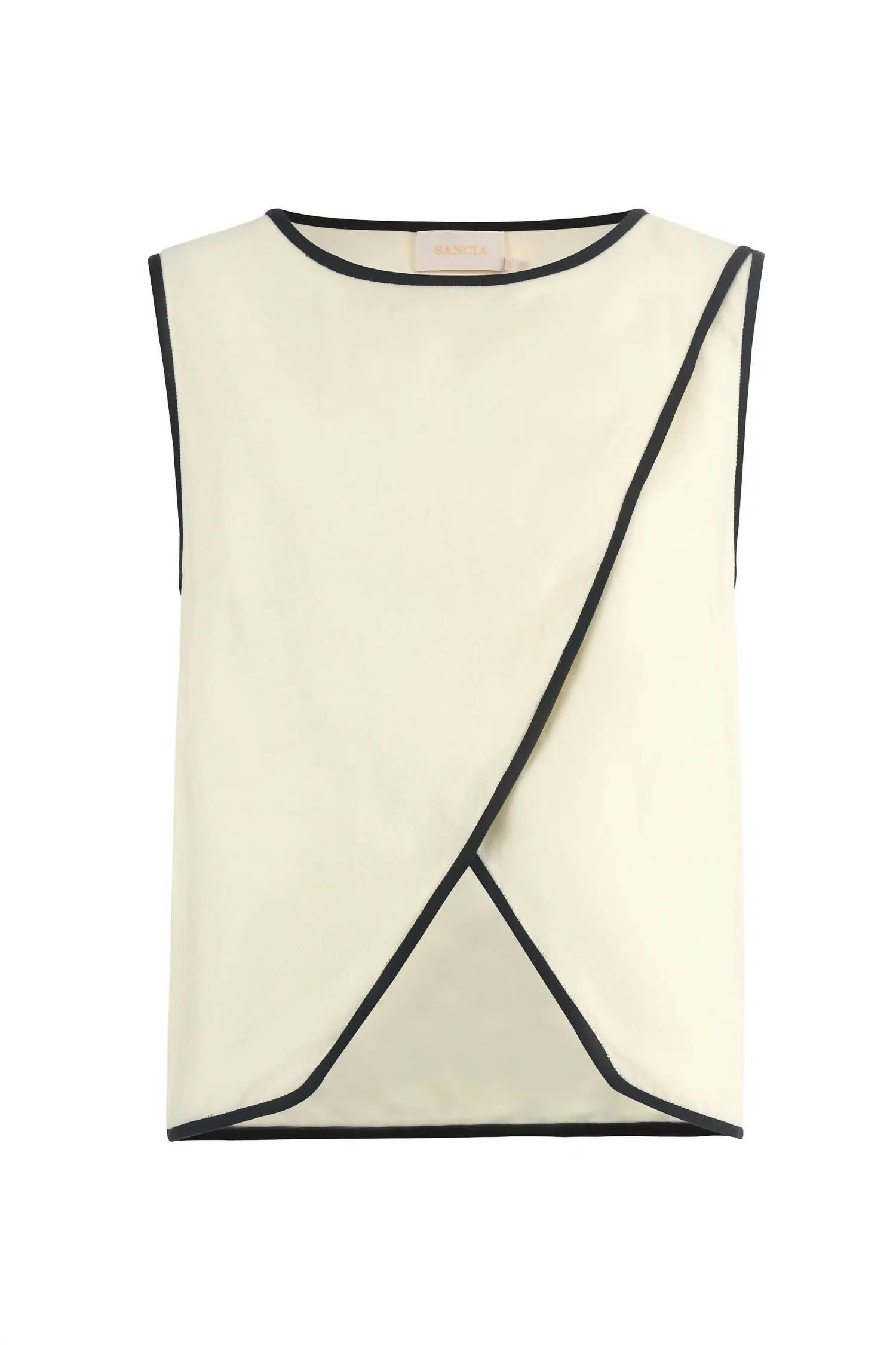 The perfect tank top for those warmer weather seasons. Elevate your wardrobe with the Artemis Tank Top by Sancia, a minimalist essential in a serene sea salt shade. This sleeveless top offers a refined twist on the classic tank, featuring a chic high neckline with a unique overlapping front design. Crafted from a blend of 70% Tencel Lyocell and 30% European Linen, it promises both comfort and elegance. Closure: Pull on. Care: Machine wash. Model is wearing a size X-Small.